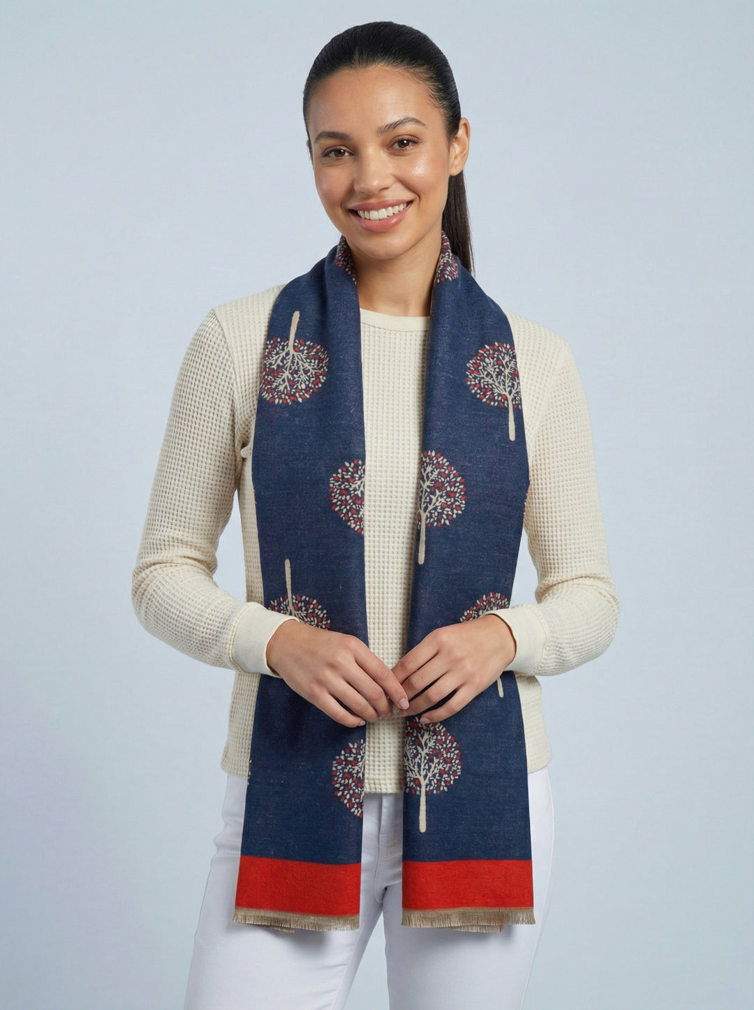 No.113 Tree Of Life Print Scarf-Navy