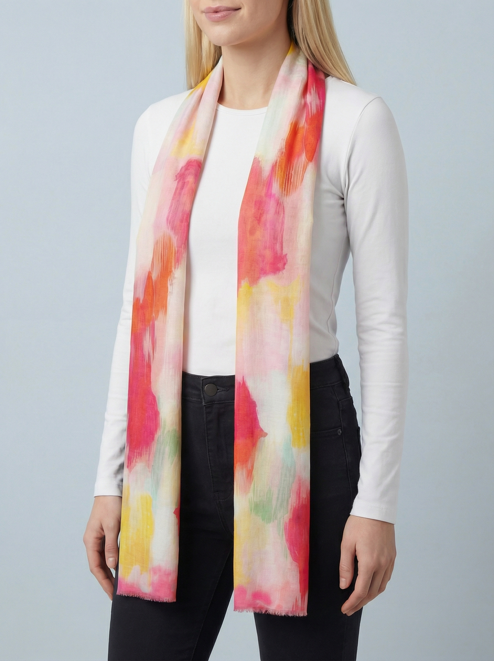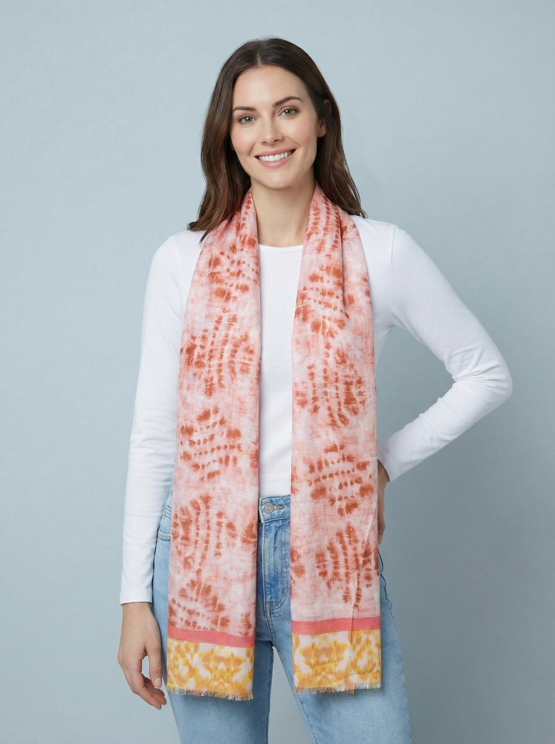 No.100 Artistic Print Scarf-Coral