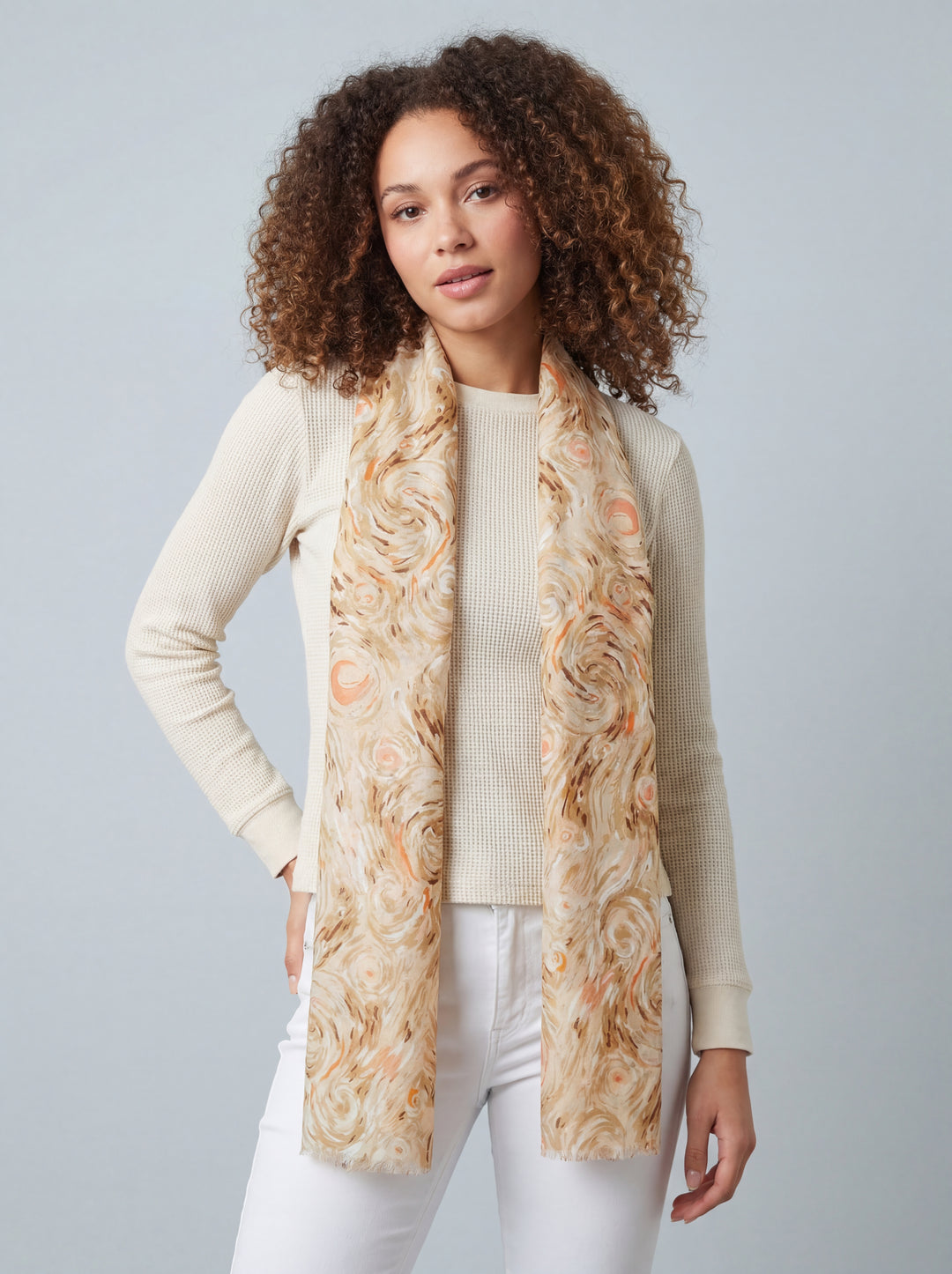 No.88 Artistic Print Scarf-Cream & Tan
