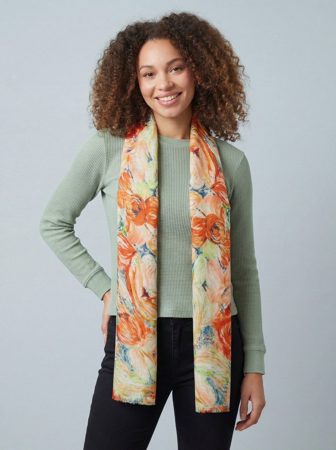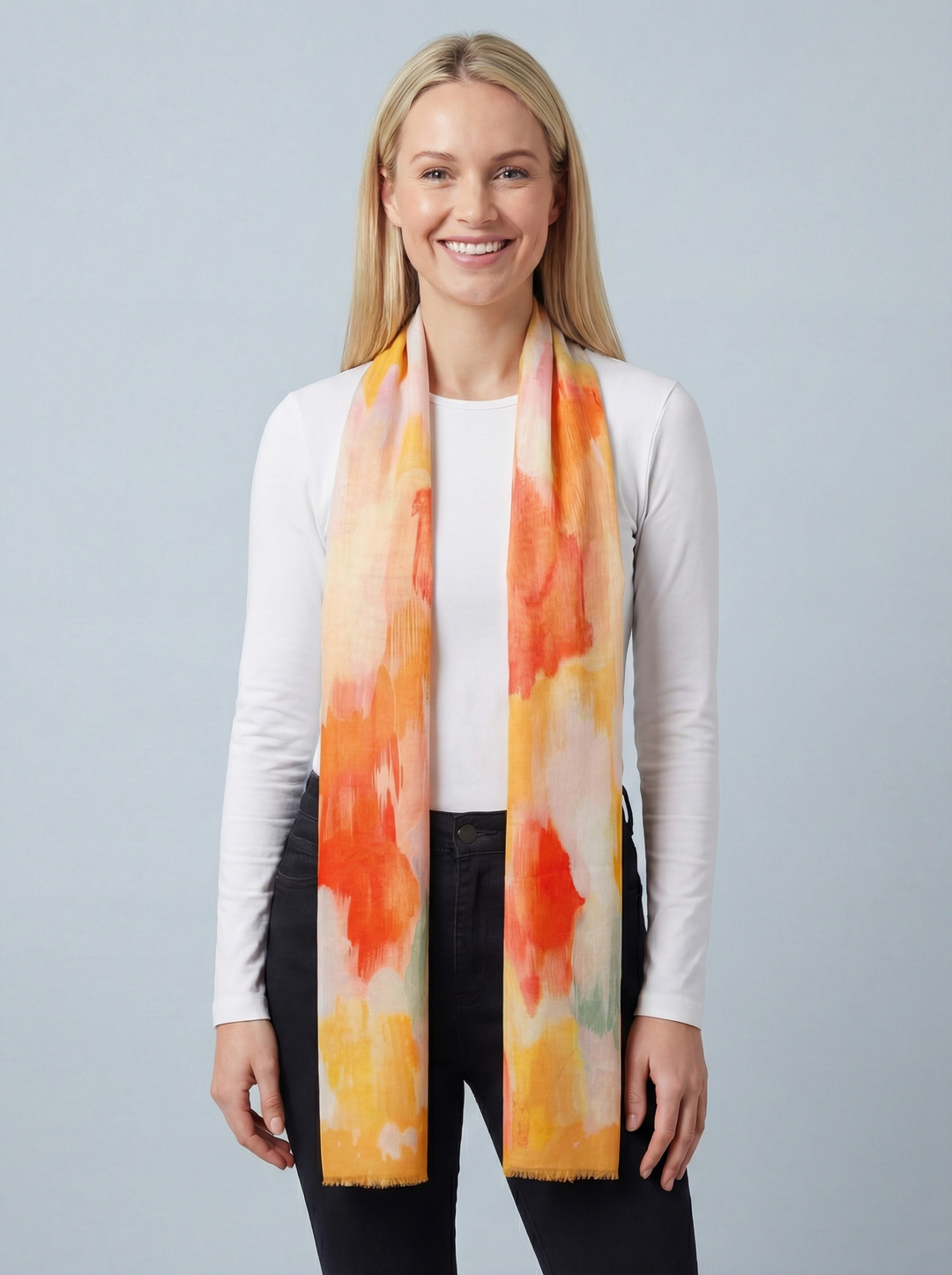 No.108 Artistic Print Scarf-Orange