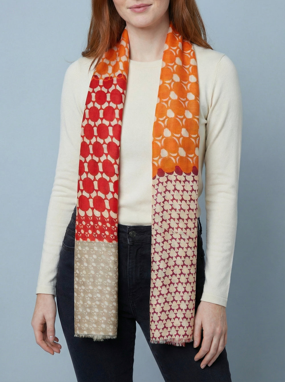 No.67 Artistic Print Scarf-Red & Orange