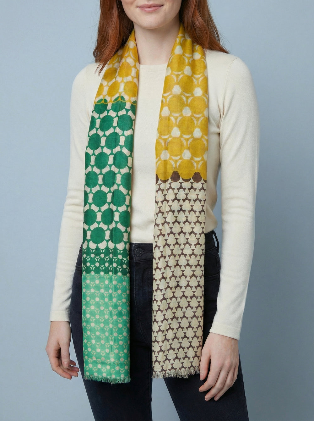 No.67 Artistic Print Scarf-Green & Yellow