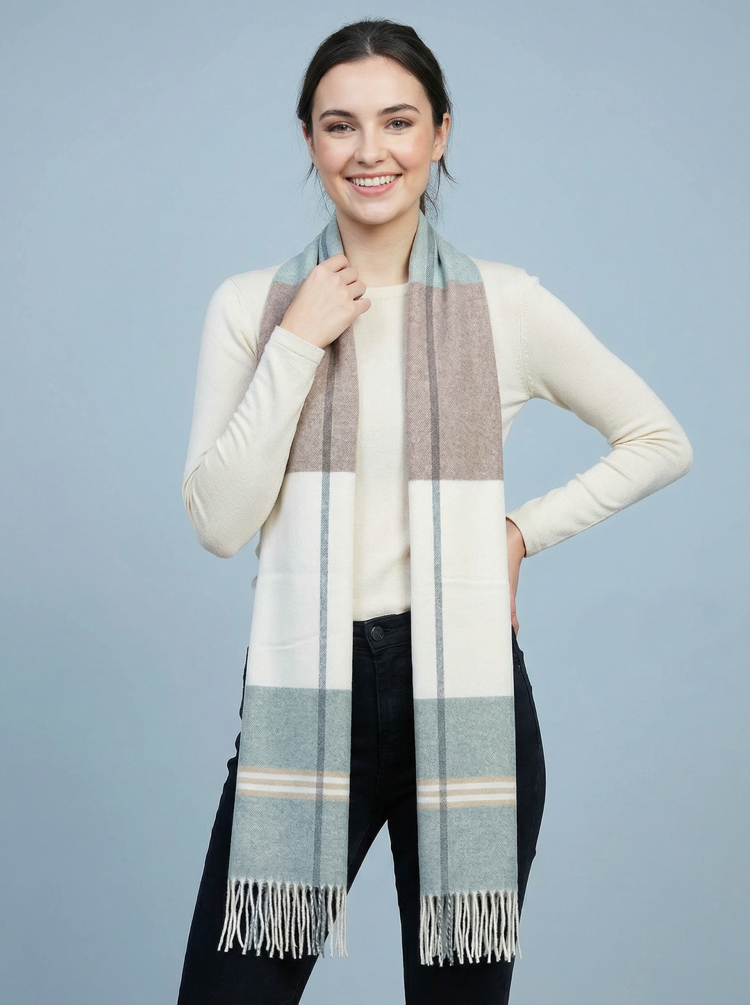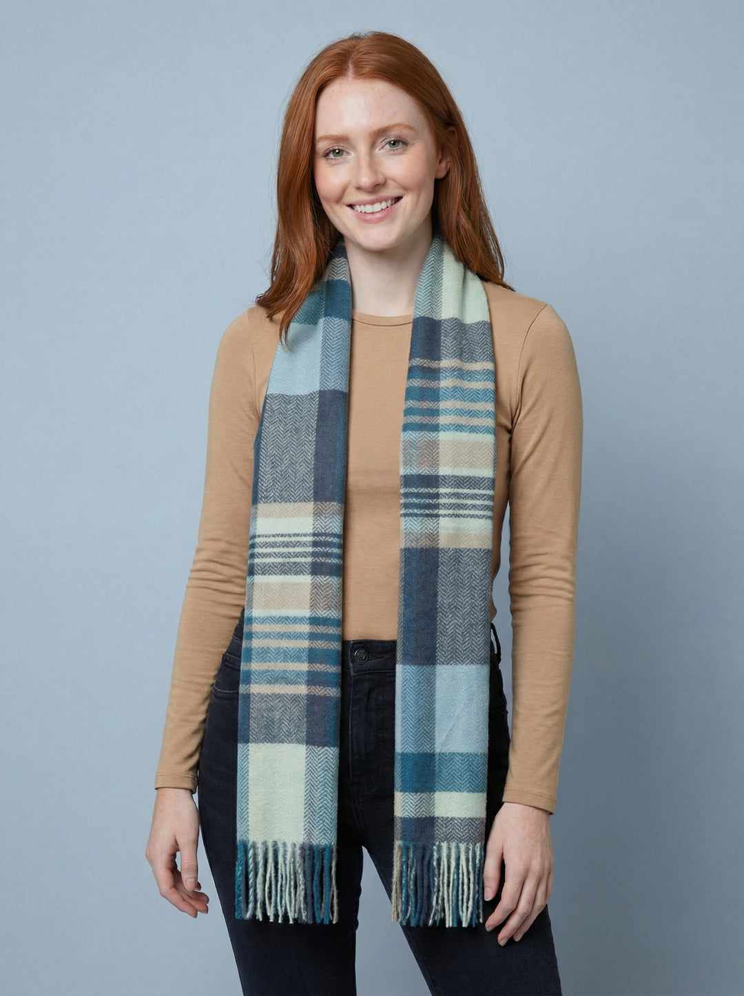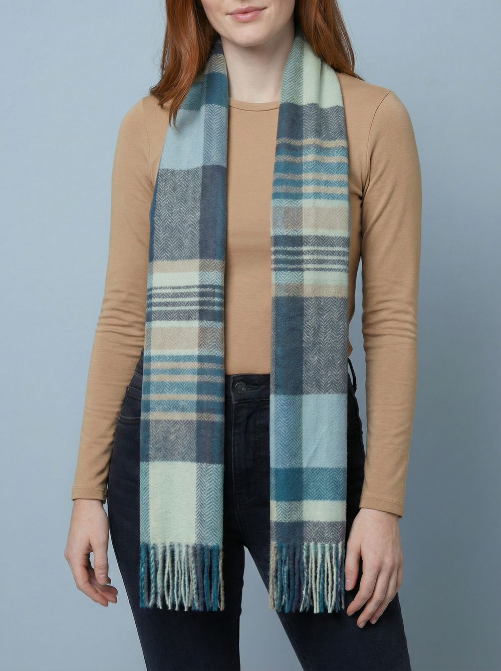 No.62 Check Print Scarf-Teal & Mocha
