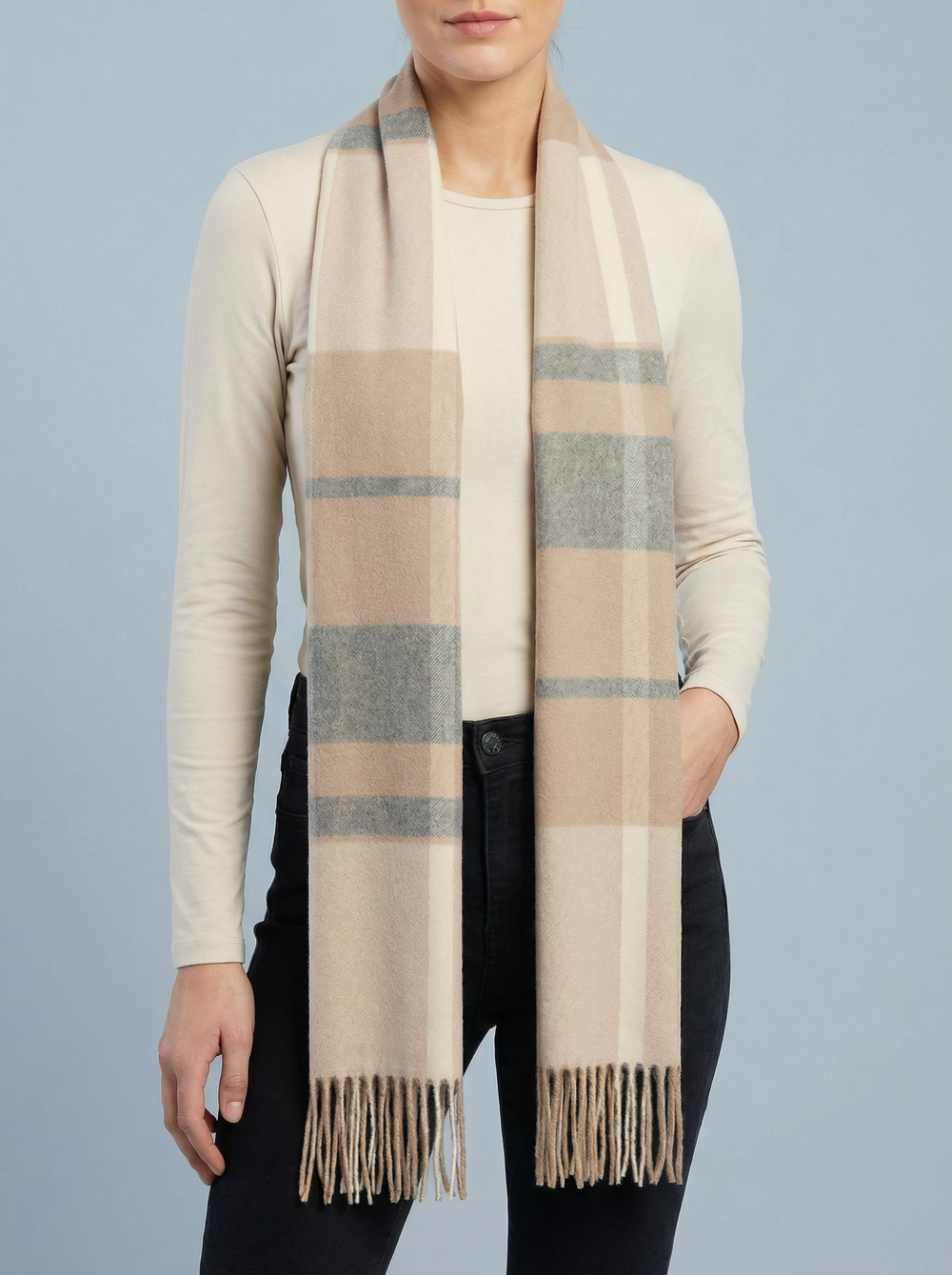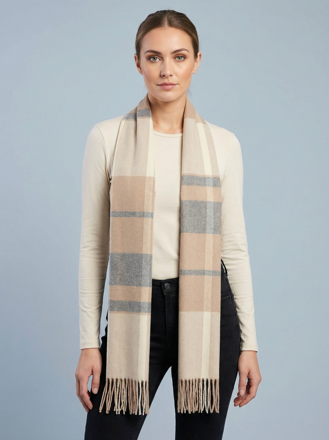 No.61 Check Print Scarf-Tan & Cream