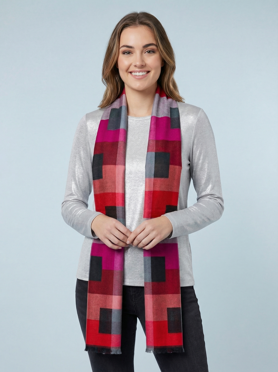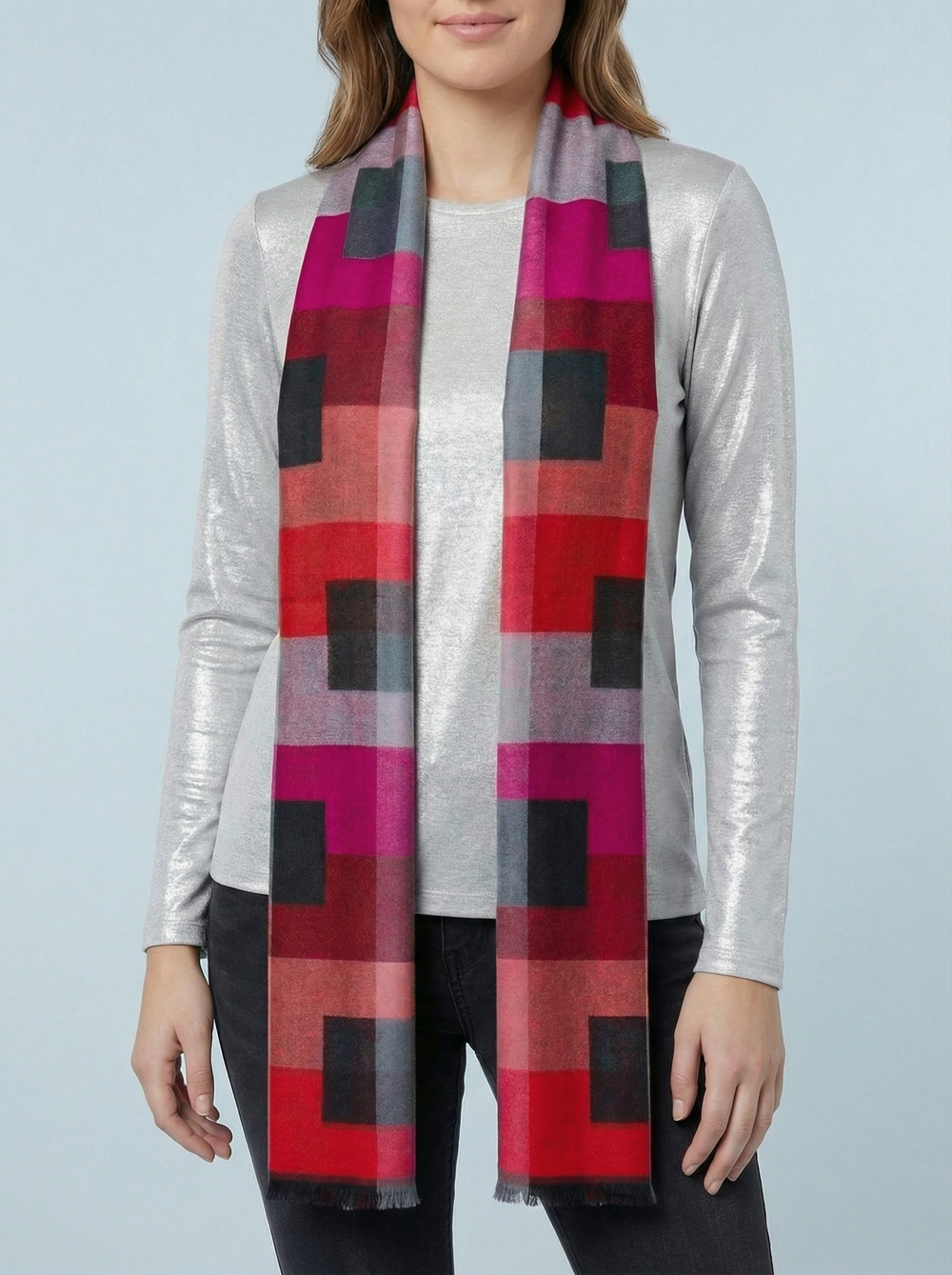 Block Print Scarf-Red/Silver & Black
