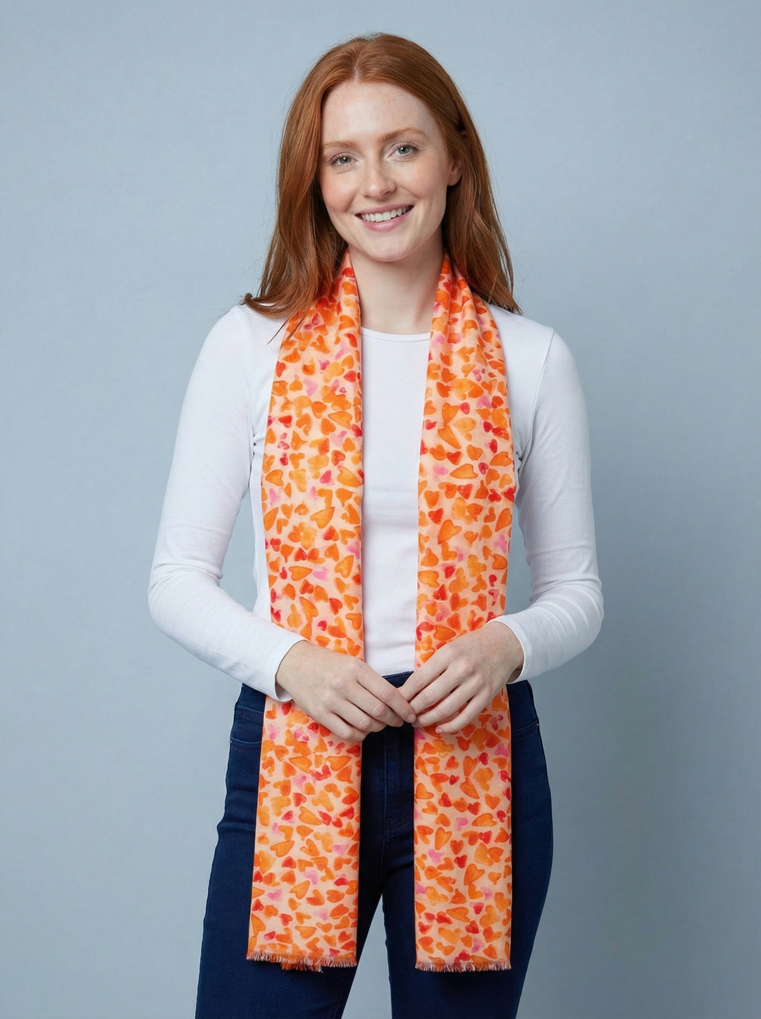 No.101 Heart Print Scarf-Cream & Orange