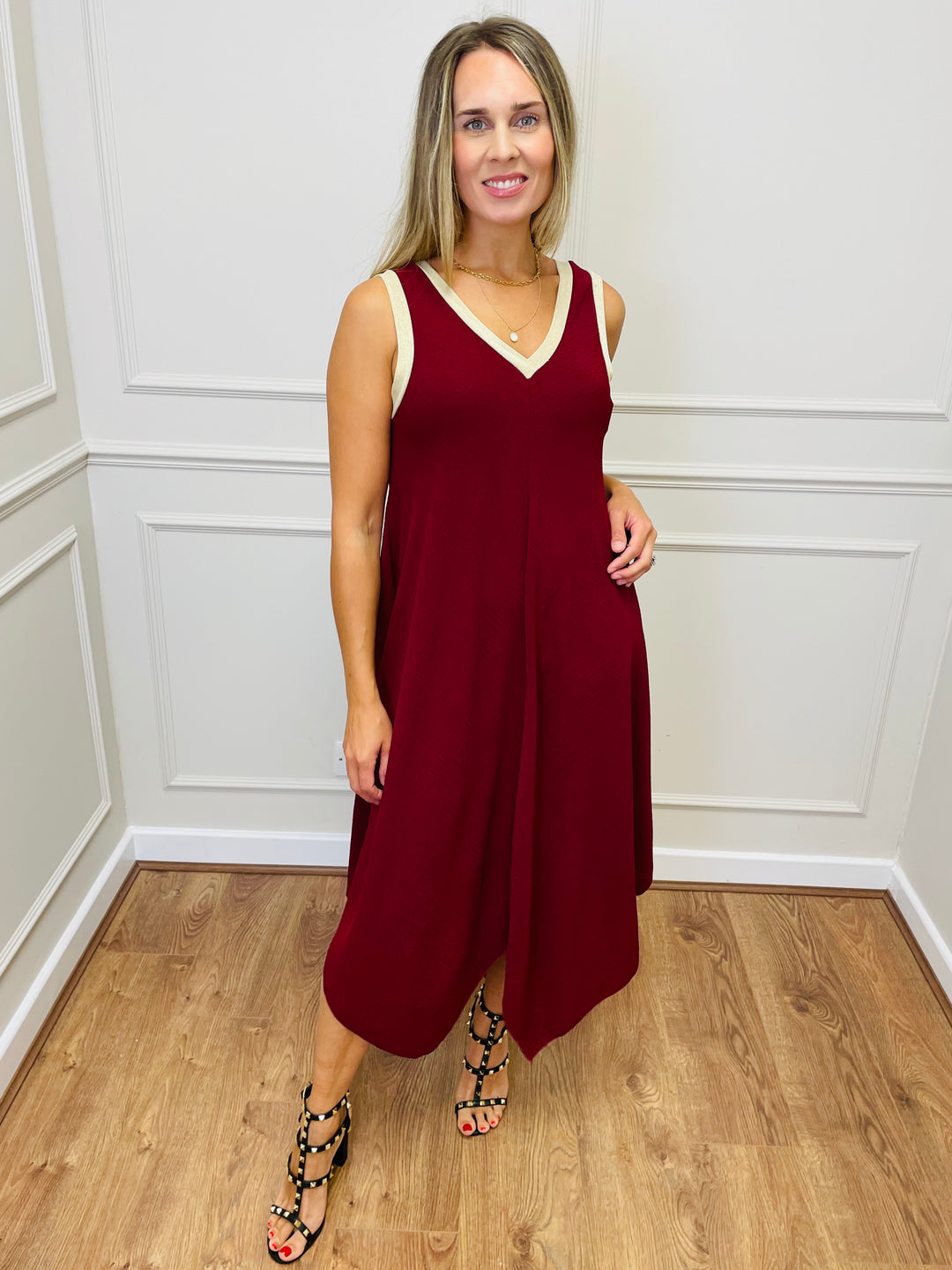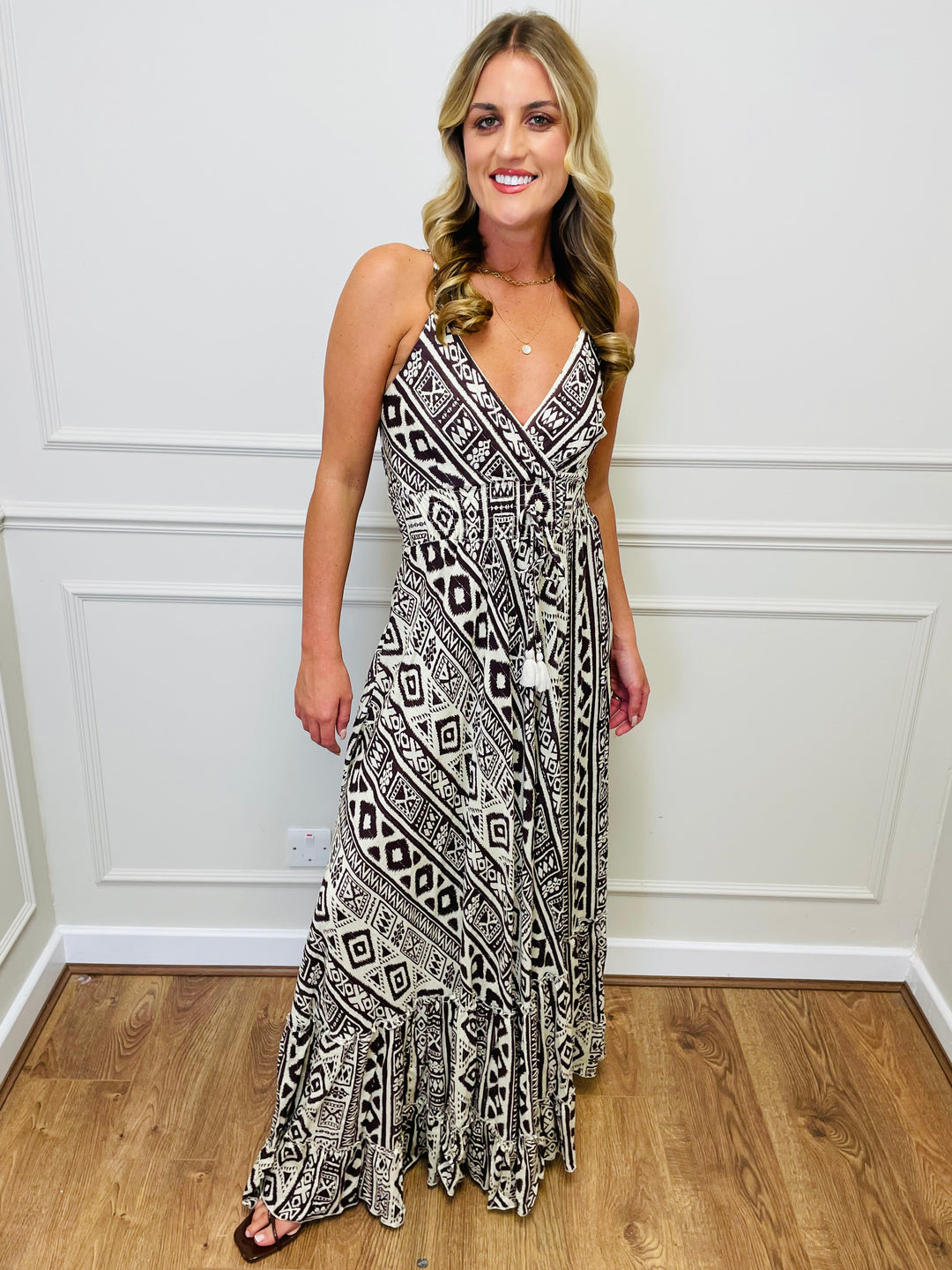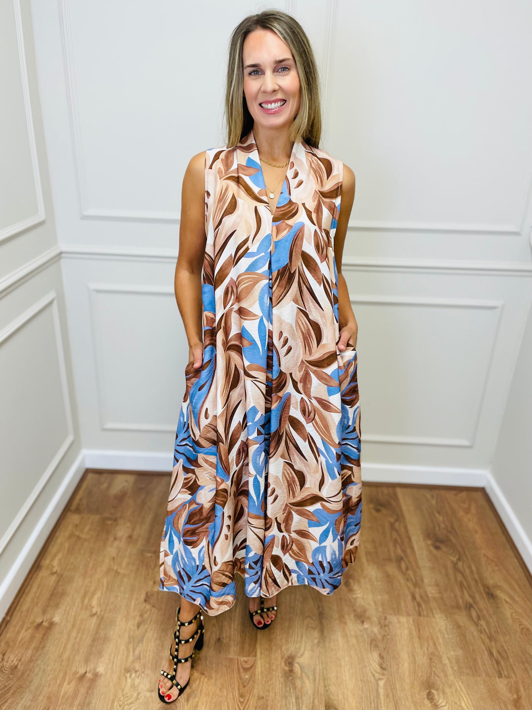 "CELIA" Pleated Dress-Camel