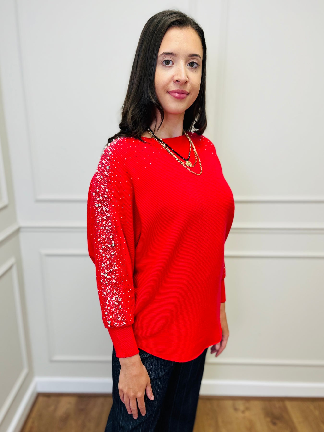 Effortlessly elegant with a touch of luxury — the Maya Jumper is a timeless piece designed to elevate your everyday style. With its soft textured knit and delicate pearl embellishments along the sleeves, this jumper blends comfort with sophistication in the most effortless way.
