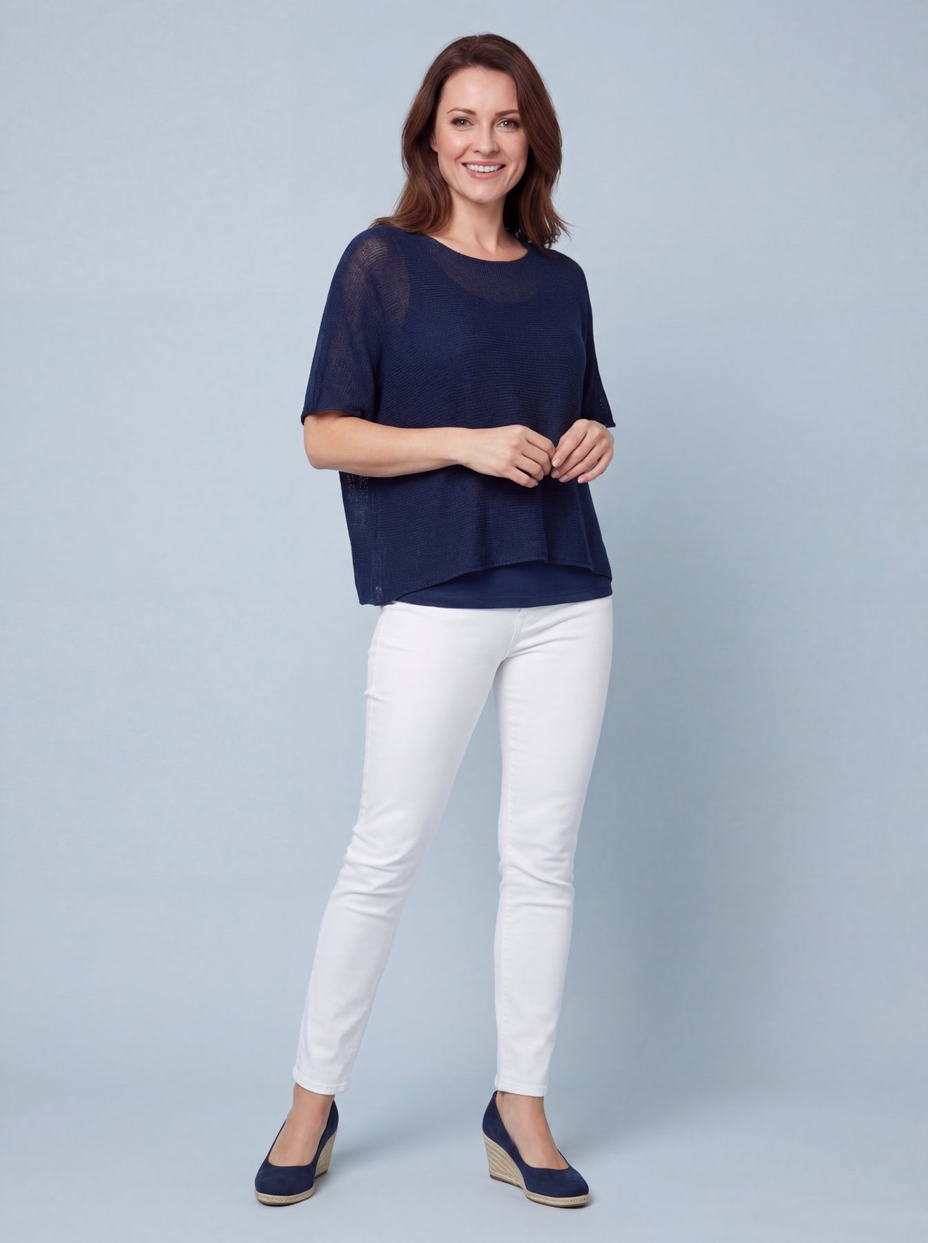"RAYA” Fine Knit Top - Navy
