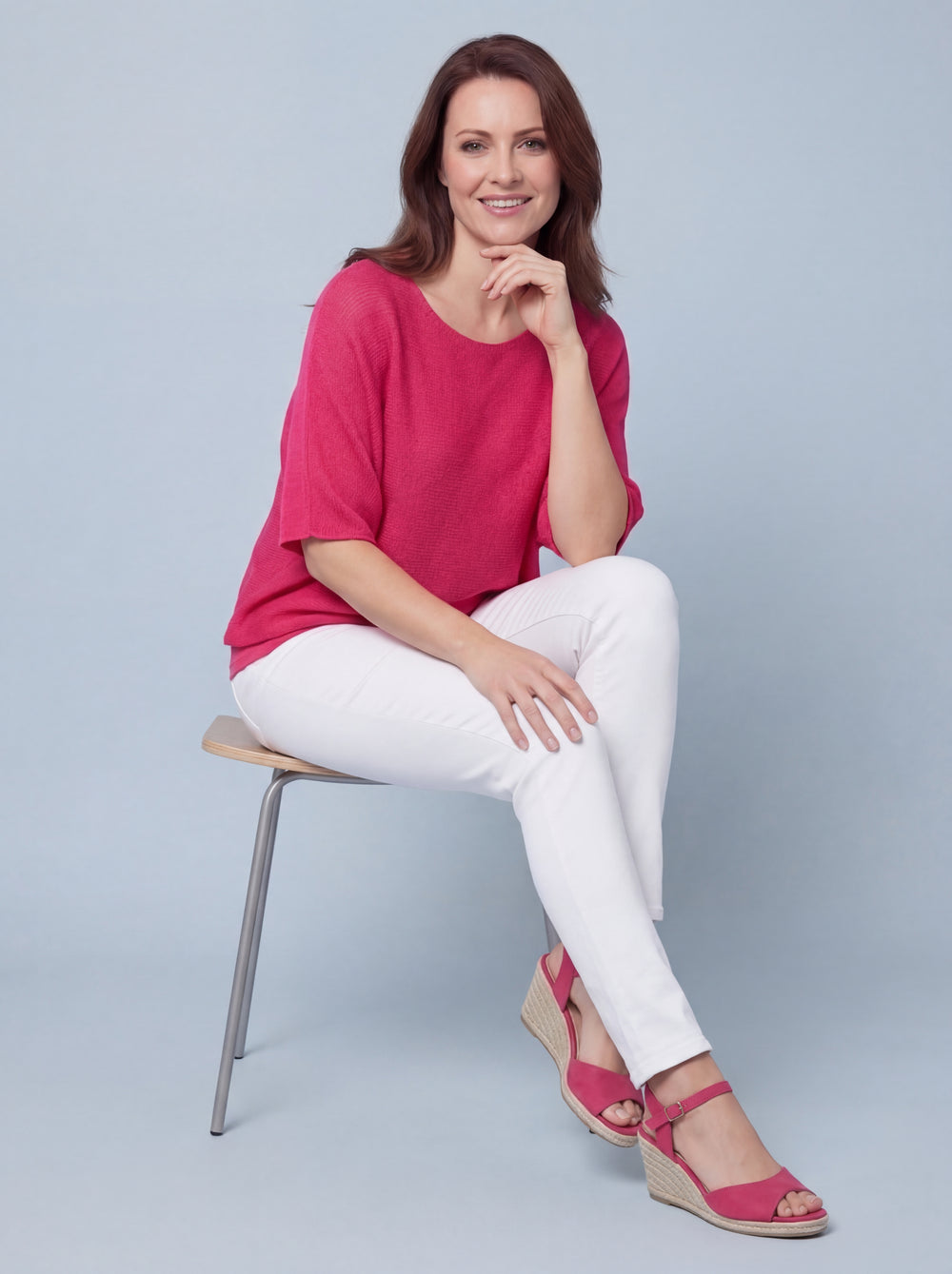 "RAYA” Fine Knit Top - Cerise Pink
