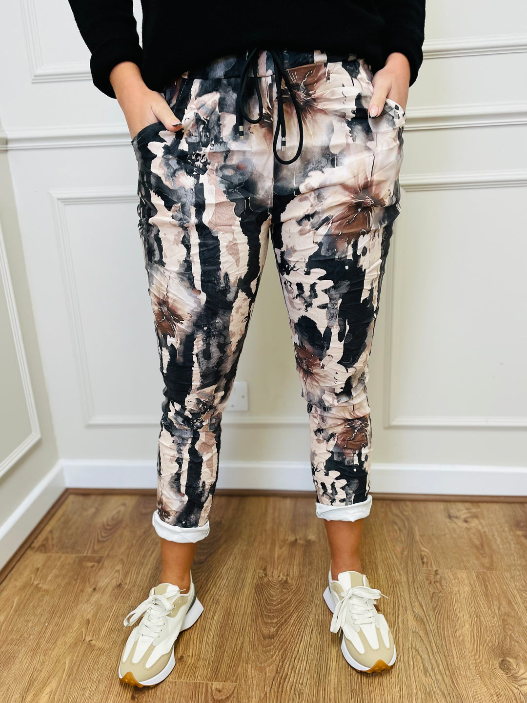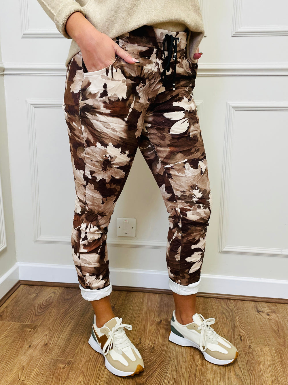 "CARMELA" Animal & Floral Print Trouser-Brown & Cream