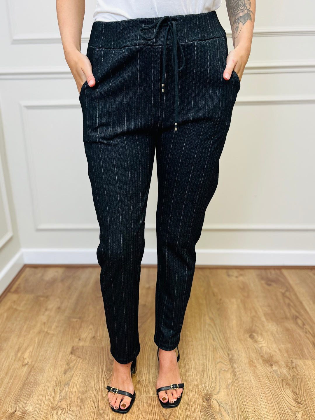 "MICHELLE" Pinstripe Bootcut Trouser-Black