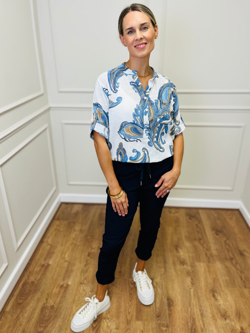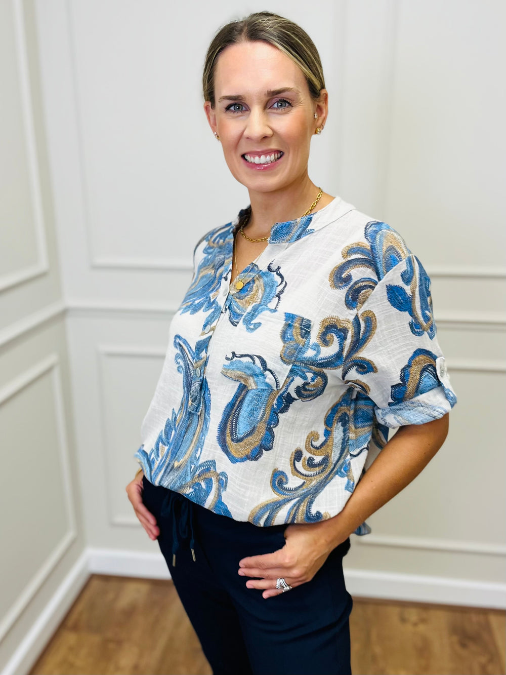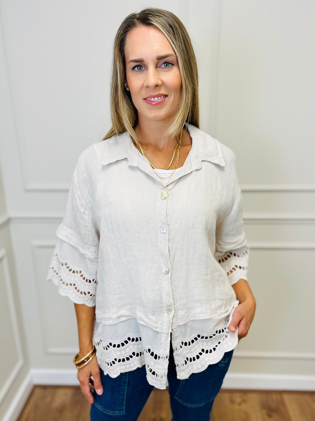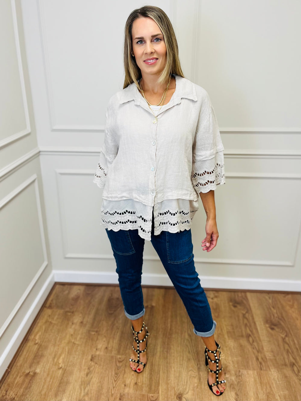 "GRACE" Stripe Print Tunic-Cream & Stone