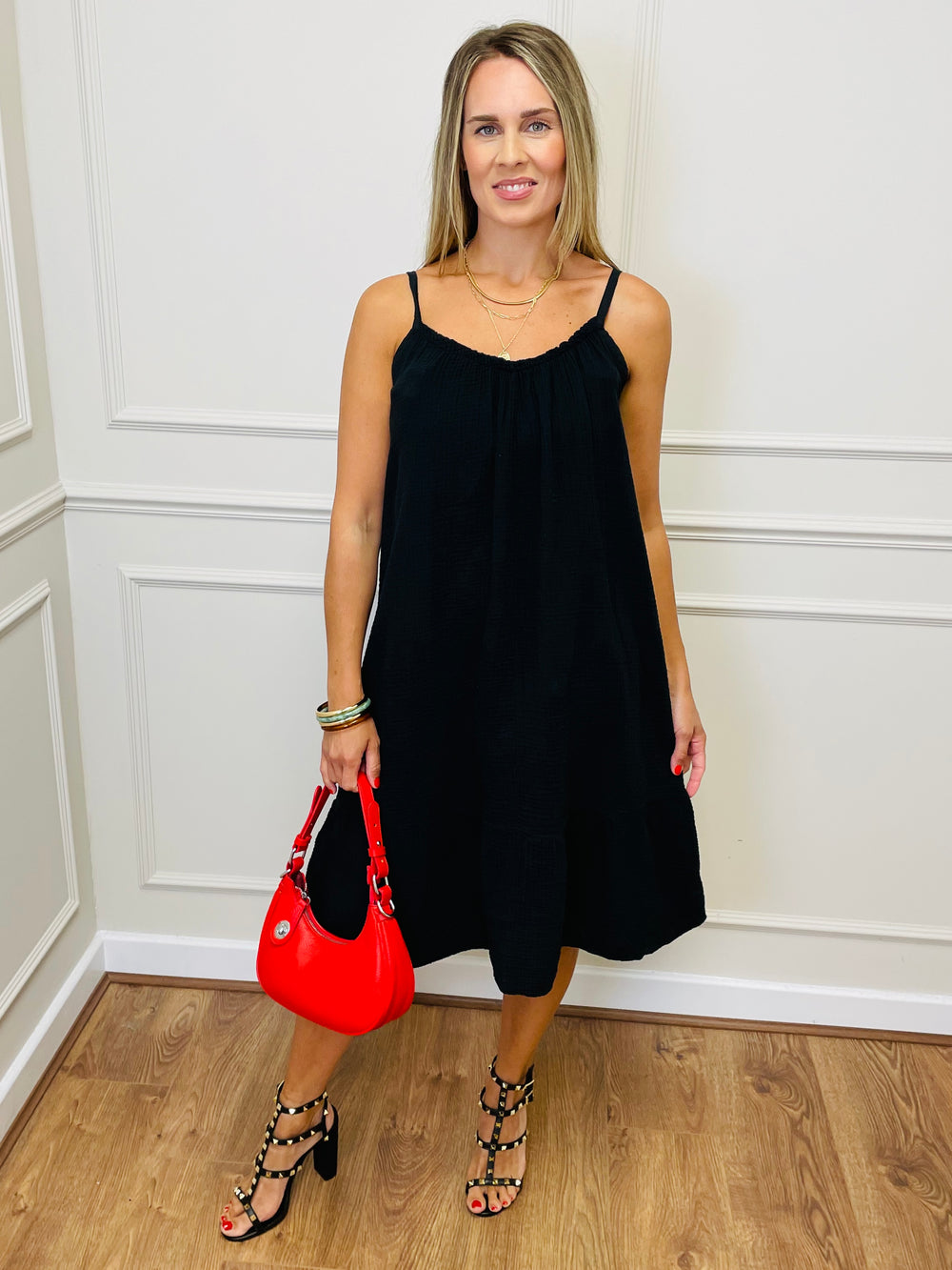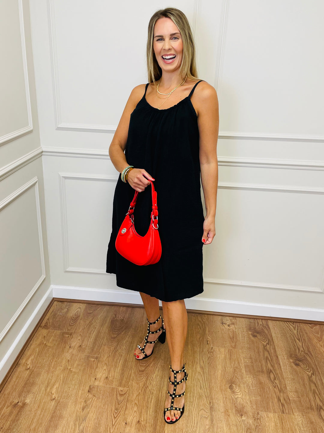 "TAYLOR" Pocket Knit Midi Dress-Black