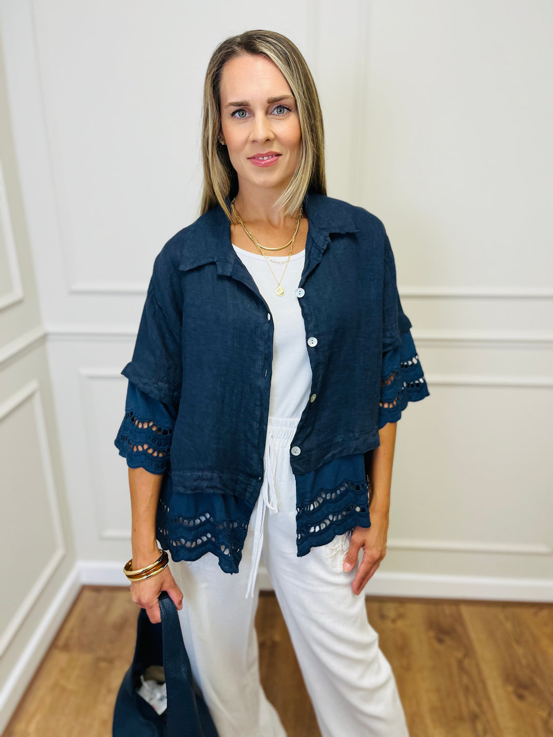"TAYLOR" Pocket Knit Midi Dress-Navy