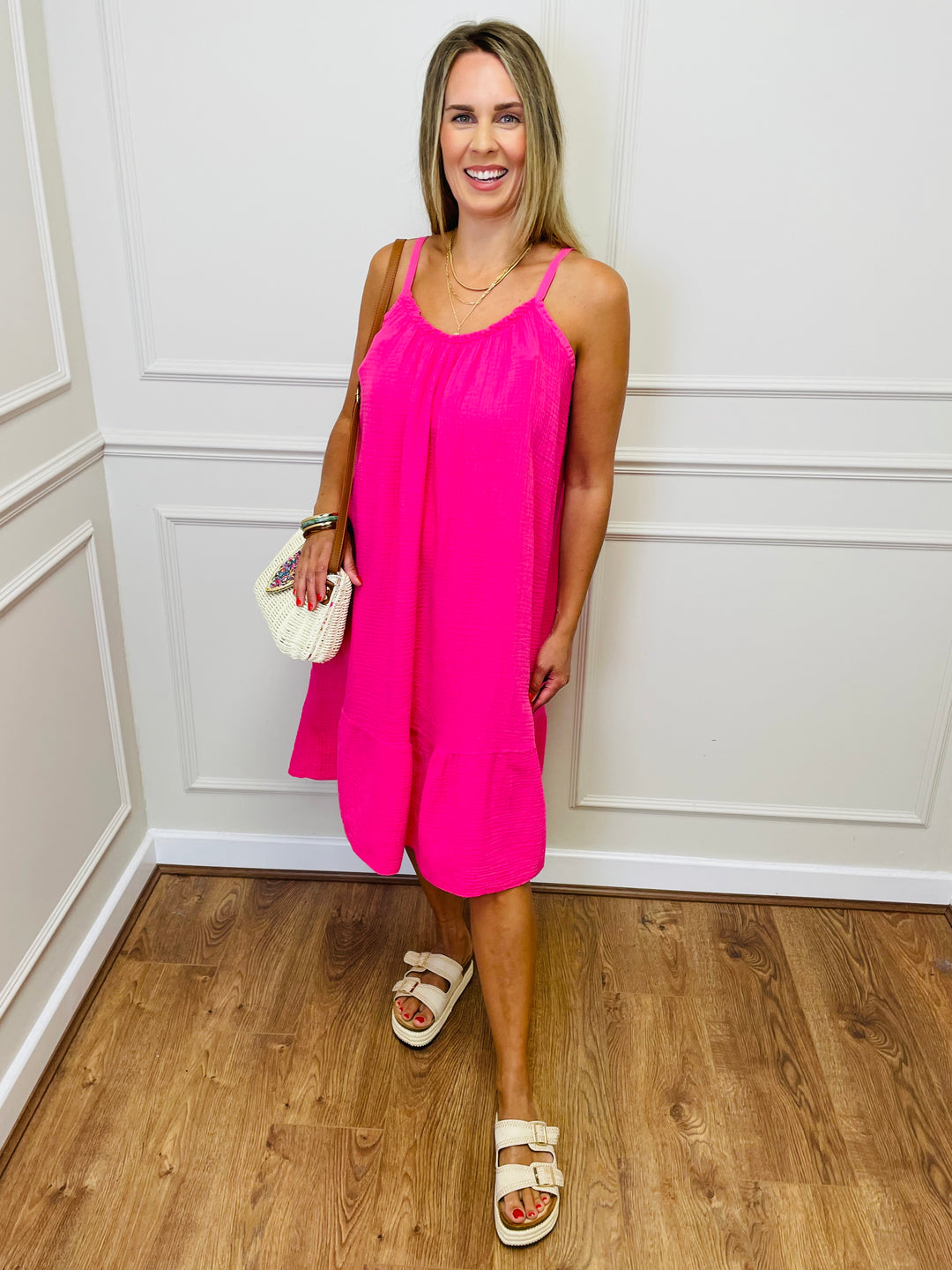 "ELY" Cable Knit Midi Dress-Cerise Pink