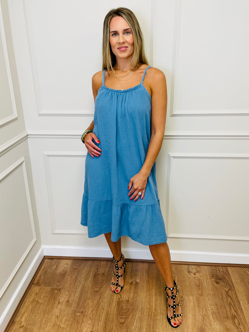 "ELY" Cable Knit Midi Dress-Denim Blue