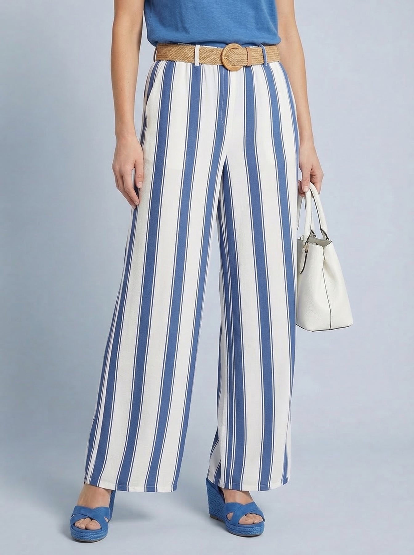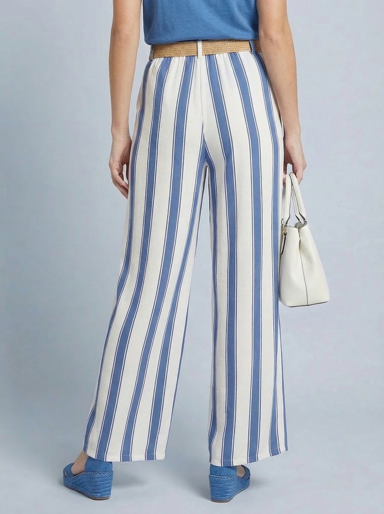 “SYLVIE” Stripe Trousers - Light Denim