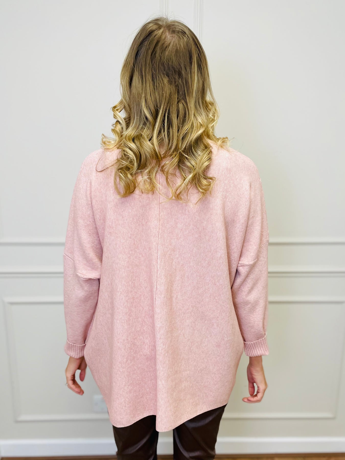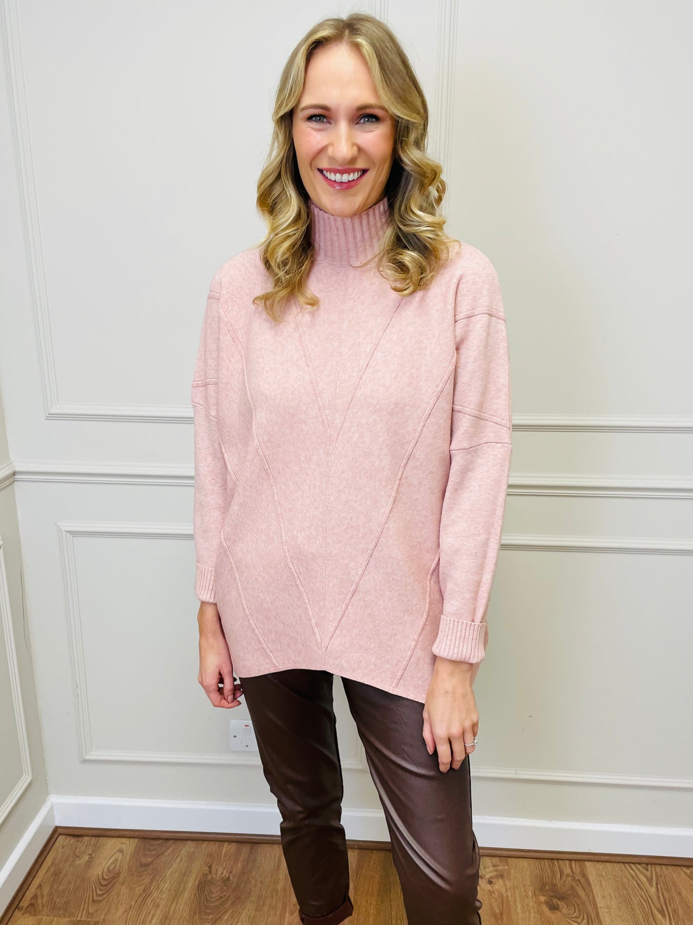 Crafted in a beautifully soft knit, this jumper features a flattering relaxed fit with subtle seam detailing that draws the eye and elongates the silhouette. The high ribbed neckline adds a touch of chic structure, making it the perfect blend of cozy and elegant.