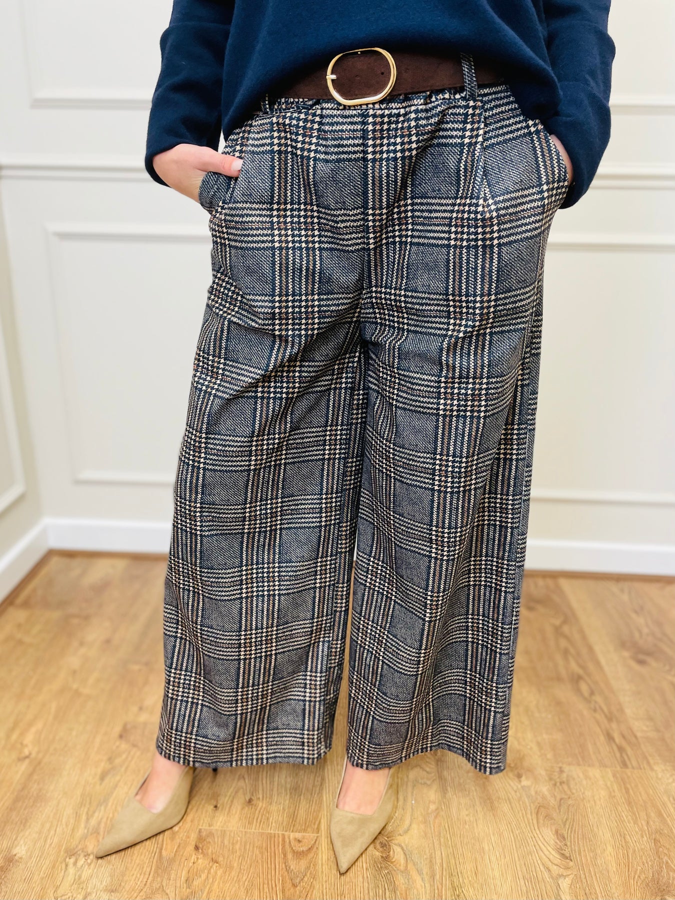 The Alani Trousers introduce timeless tailoring with a modern twist. Crafted in a beautifully structured wide-leg silhouette, they feature a rich heritage-inspired check print that adds instant depth and sophistication to any outfit. Designed for comfort with an elasticated waistband and a fluid drape, they flatter sizes 8–16 effortlessly.