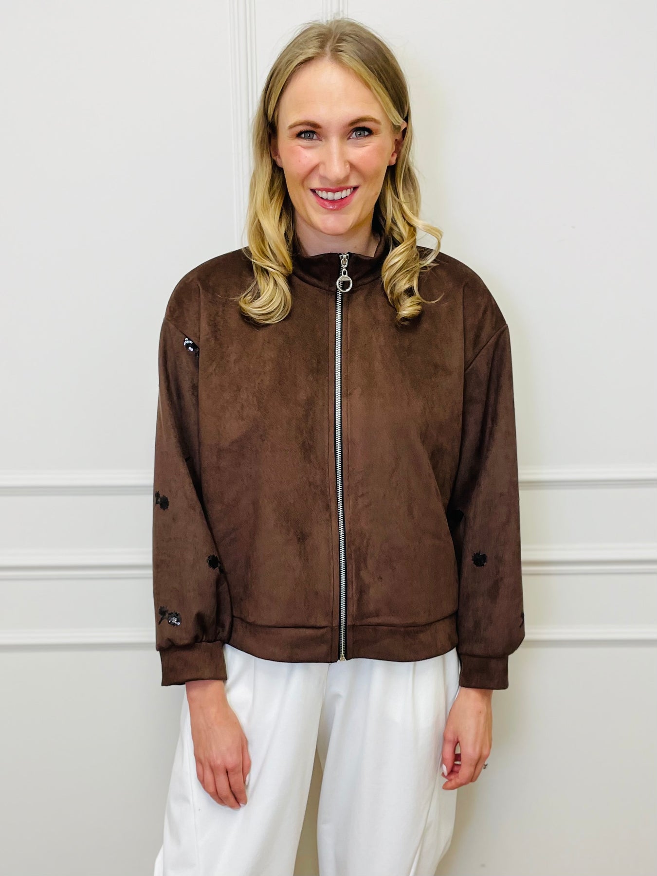 Meet the Elisa Jacket — your go-to layer for casual sophistication. Crafted from ultra-soft faux suede with a subtle brushed texture, this zip-up jacket blends comfort and modern edge. The relaxed fit and structured neckline make it an effortless statement piece that works across seasons.