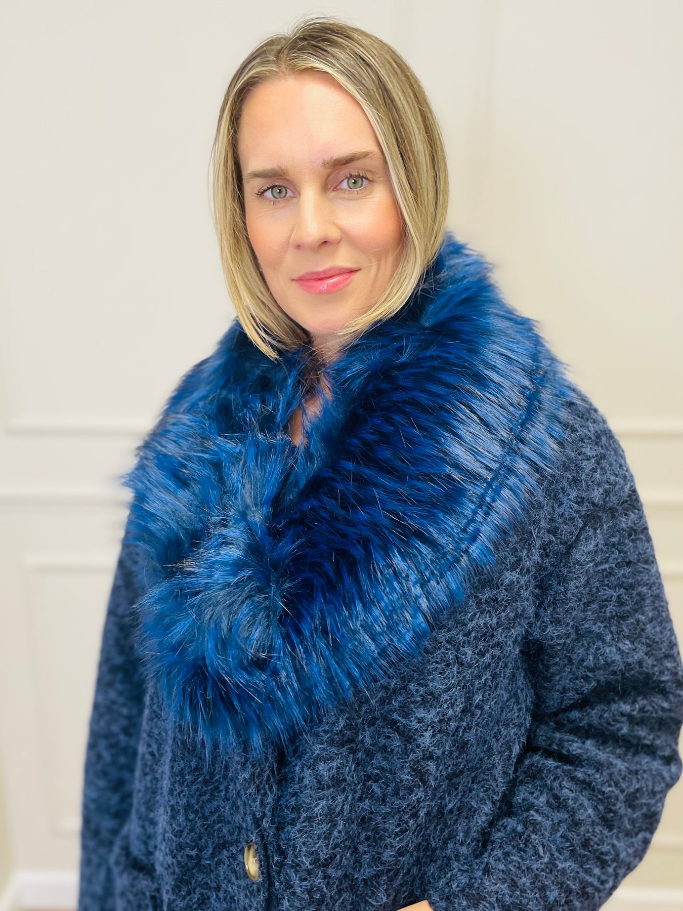 Faux Fur Collar Scarf-Navy