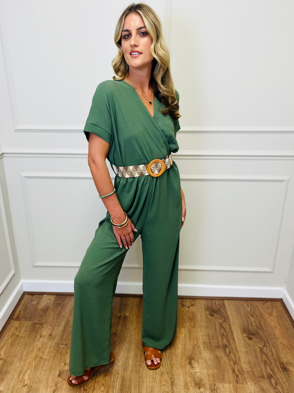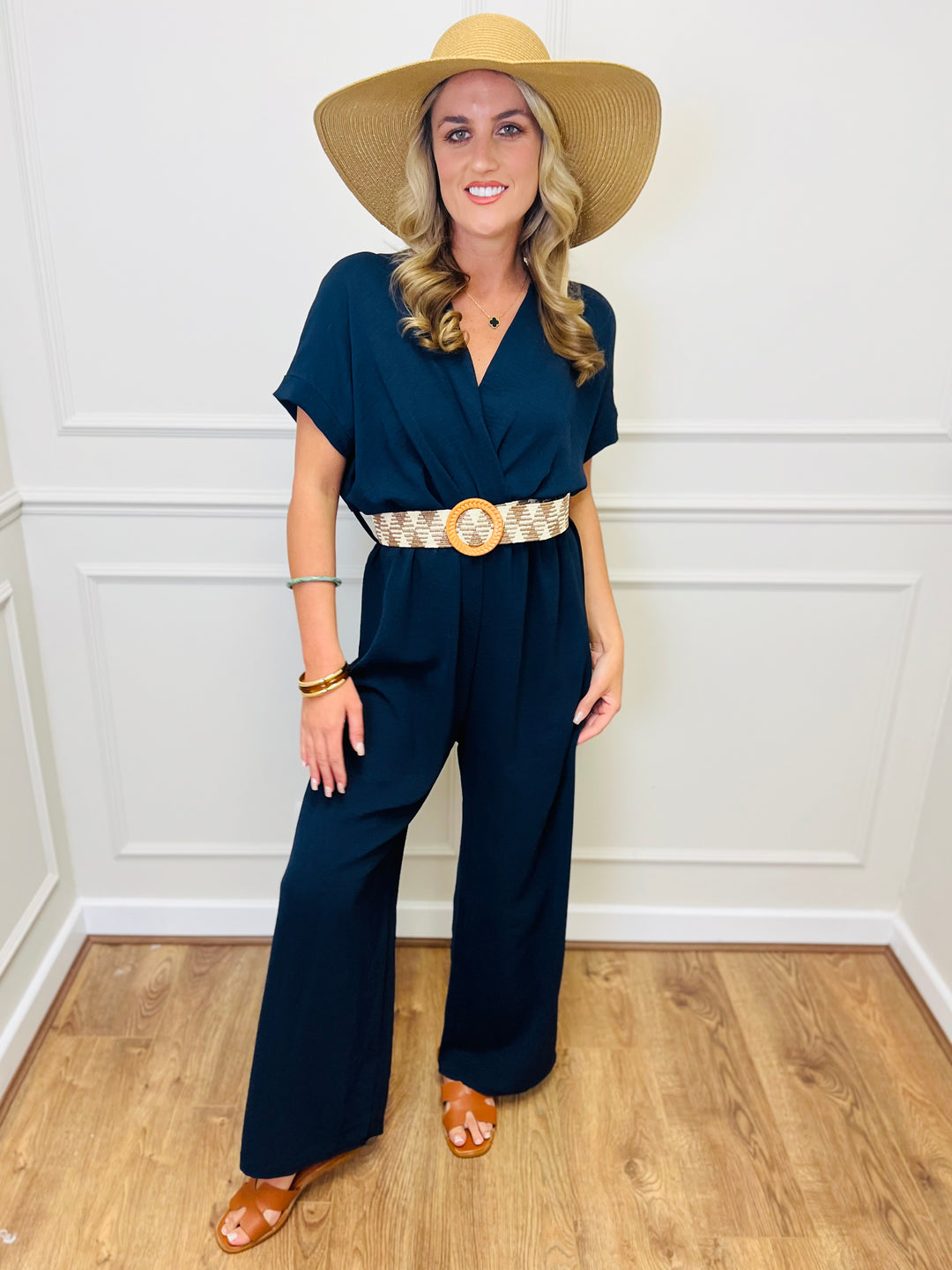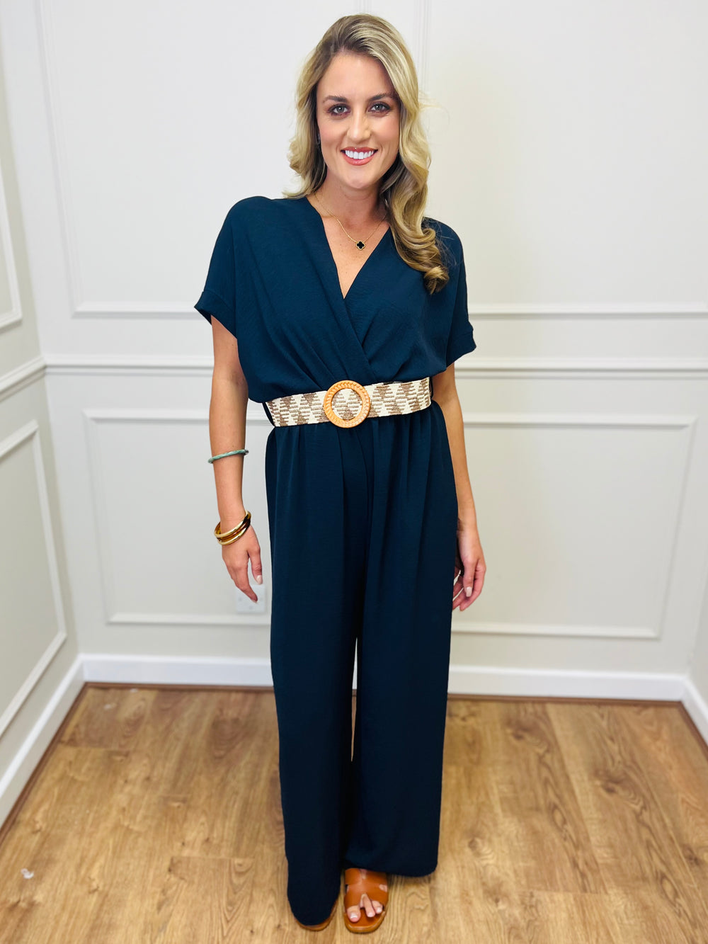 "CHELSY" Artistic Print Jumpsuit-Teal & White