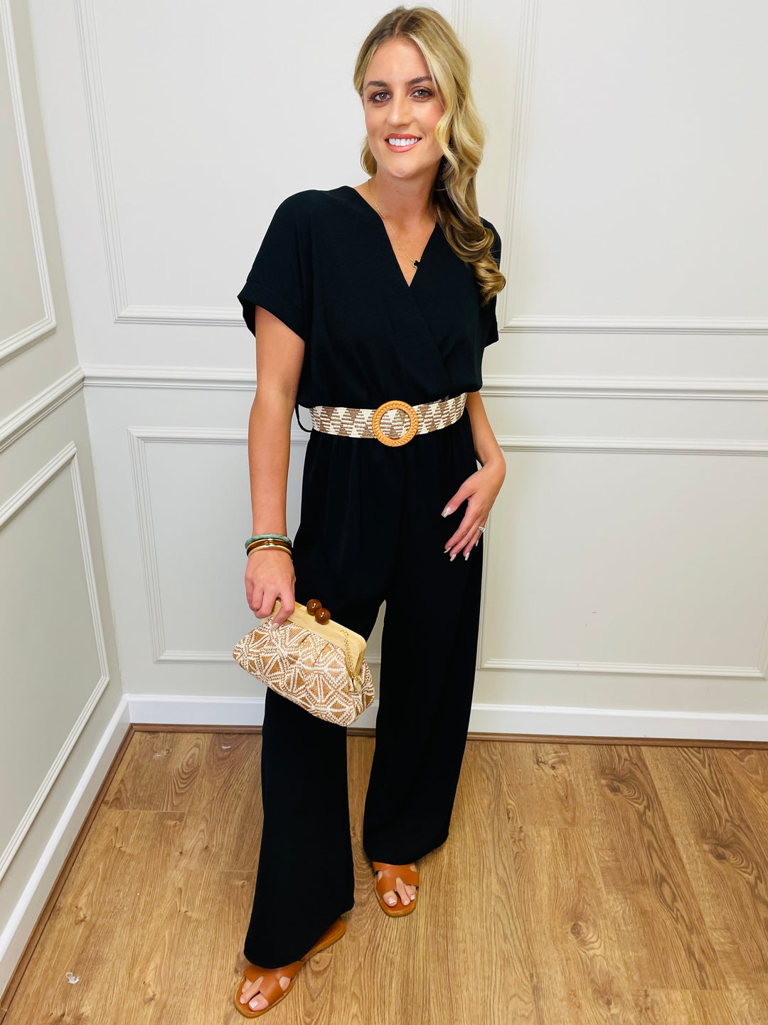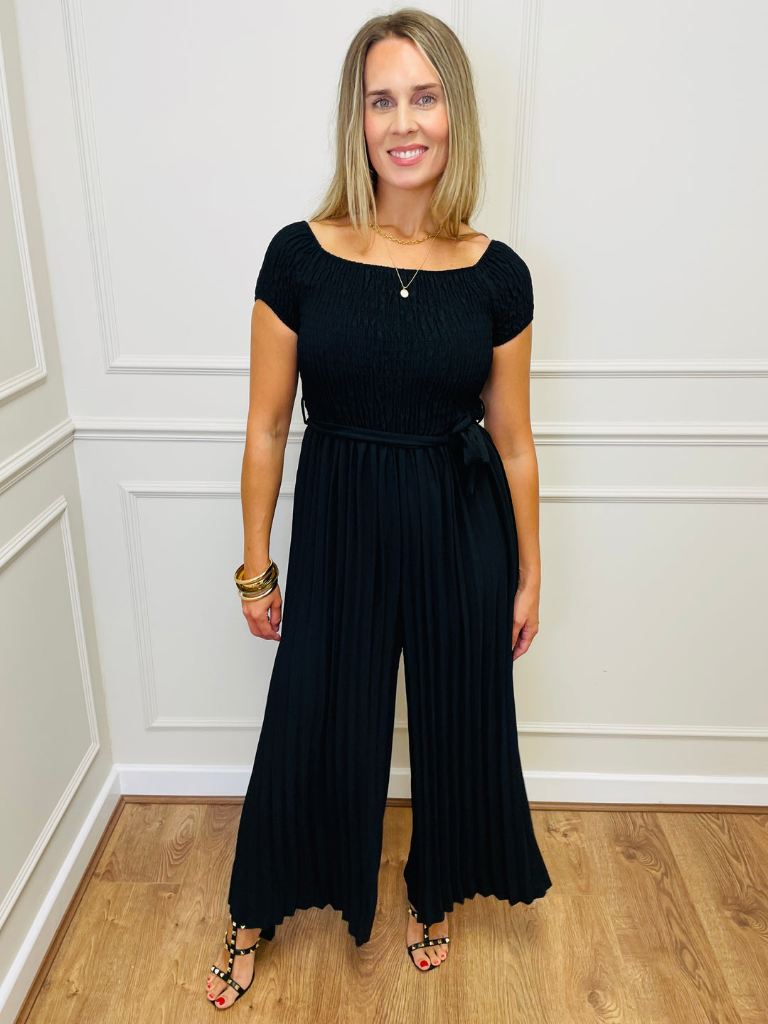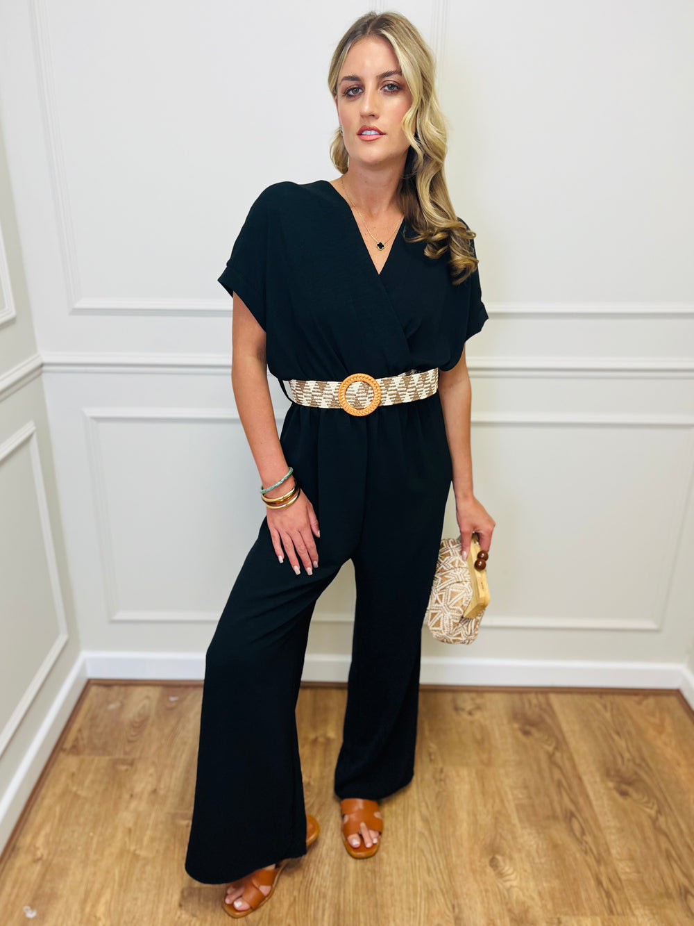 "CHELSY" Artistic Print Jumpsuit-Teal & White