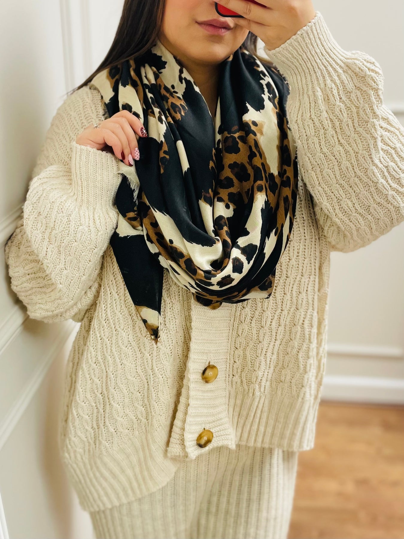 No.114 Animal Print Scarf-Brown & Gream