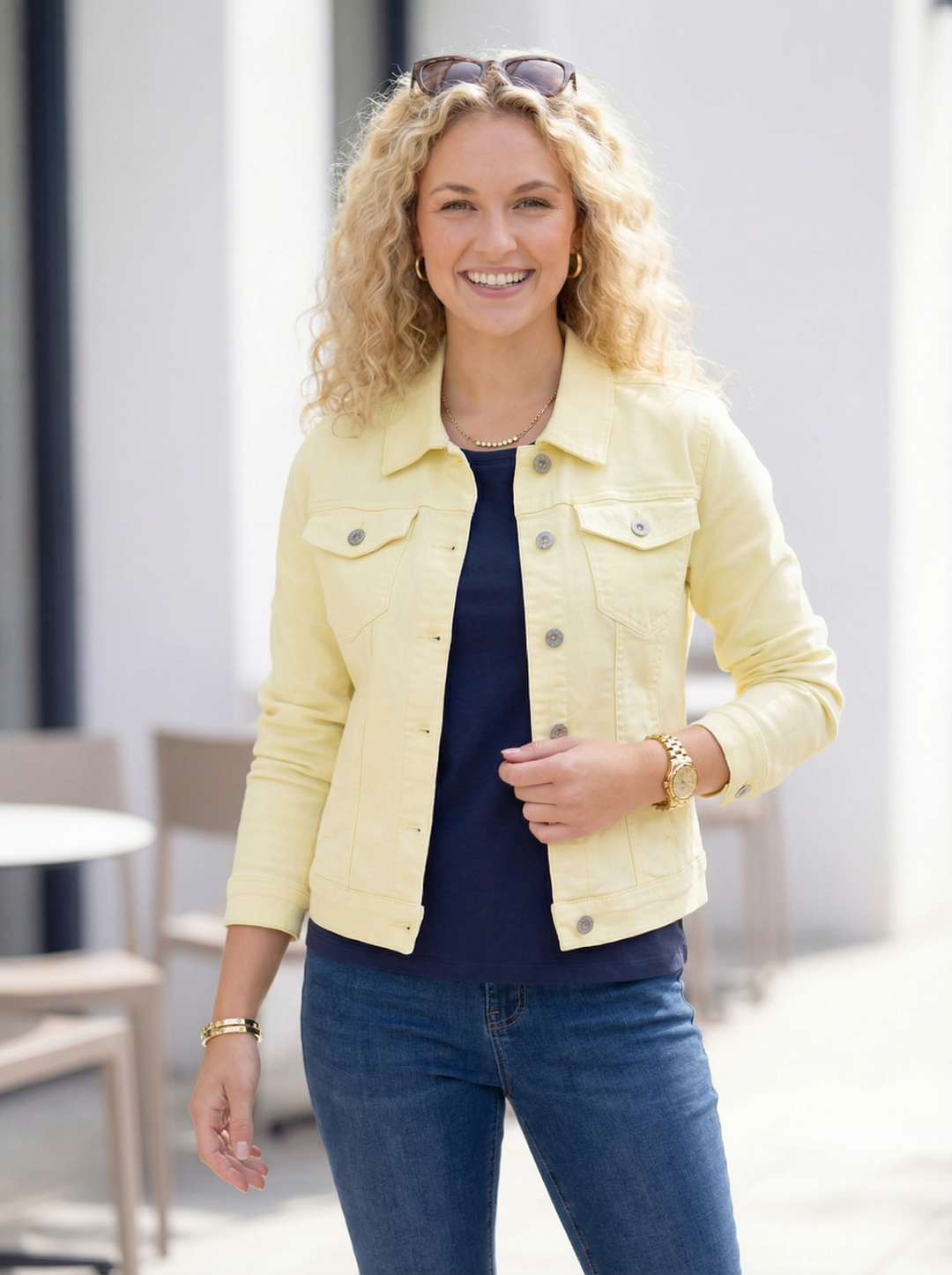 "HARRIET” Relaxed Fit Denim Jacket - Lemon