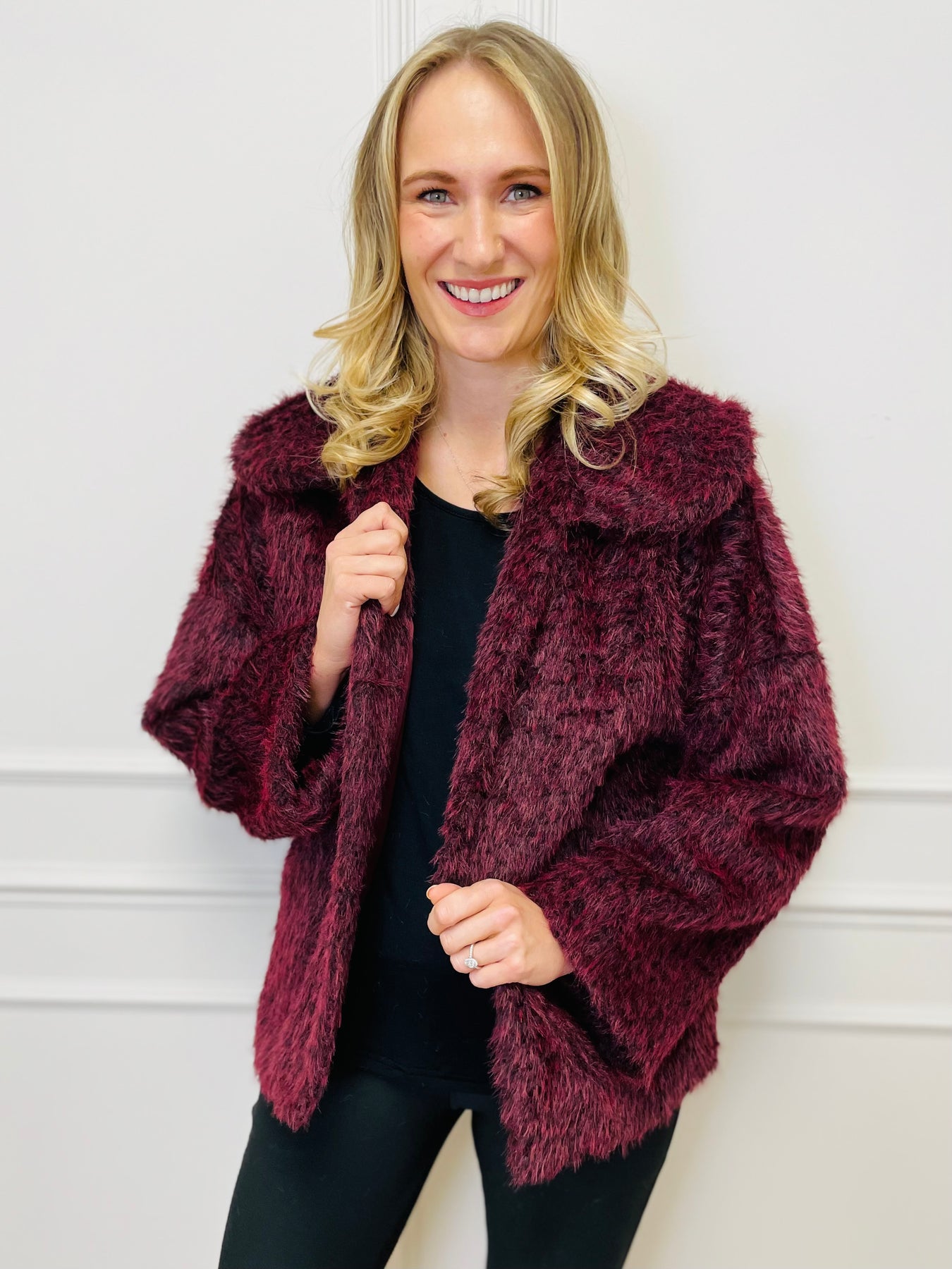 "KATE" Faux Fur Coat-Burgundy