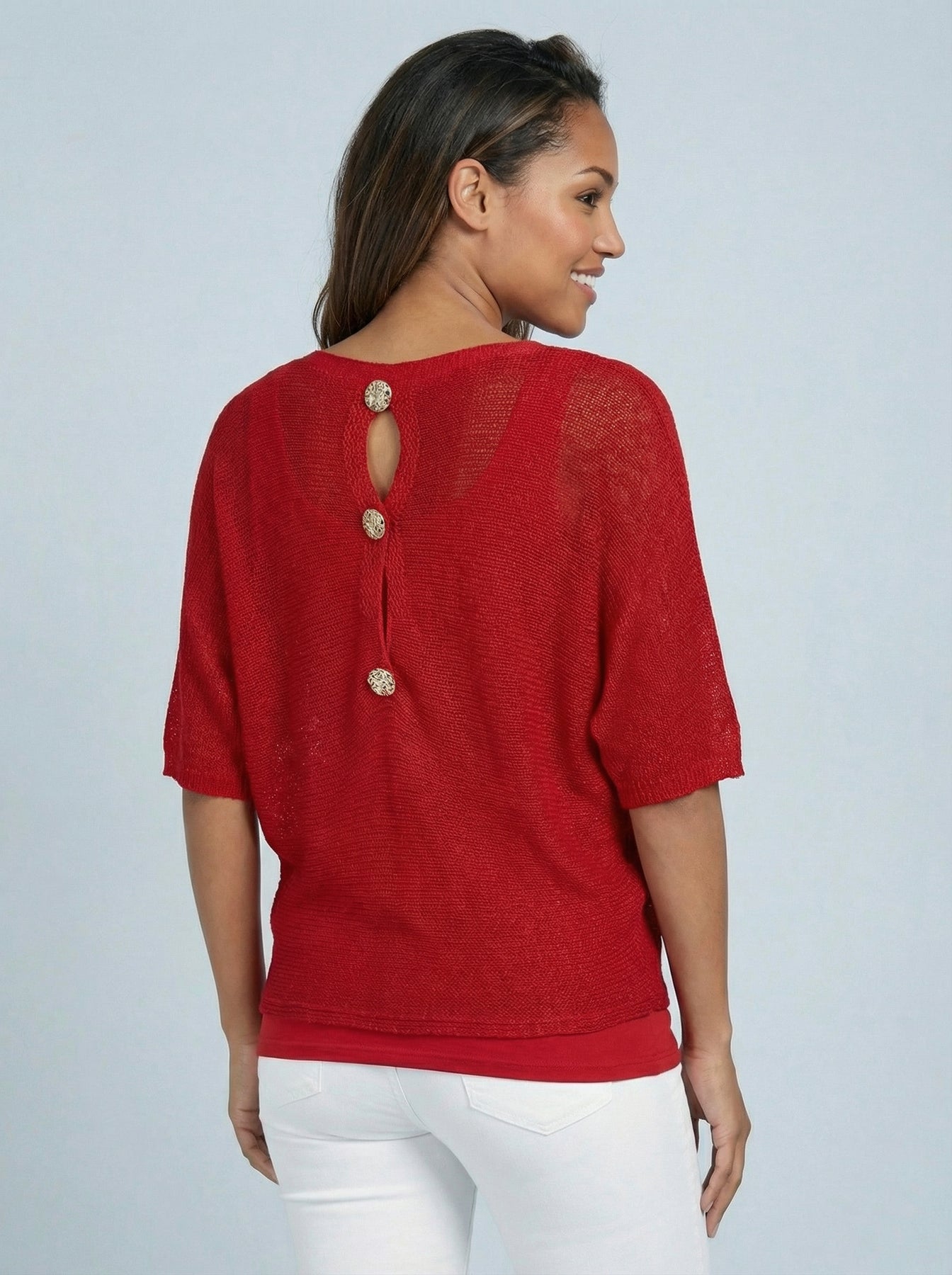 “TIFFANY” Button Back Fine Knit Top - Red