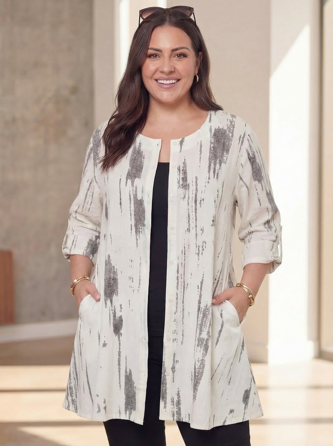 "WENDY” Cotton Button Back Tunic / Grey Acid Wash