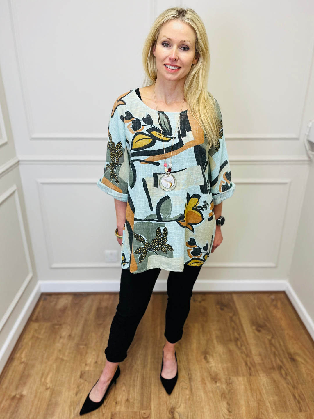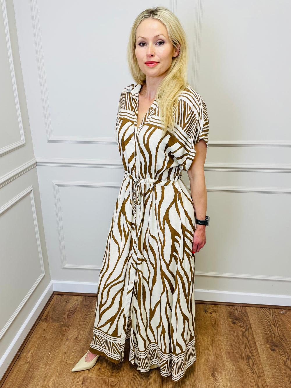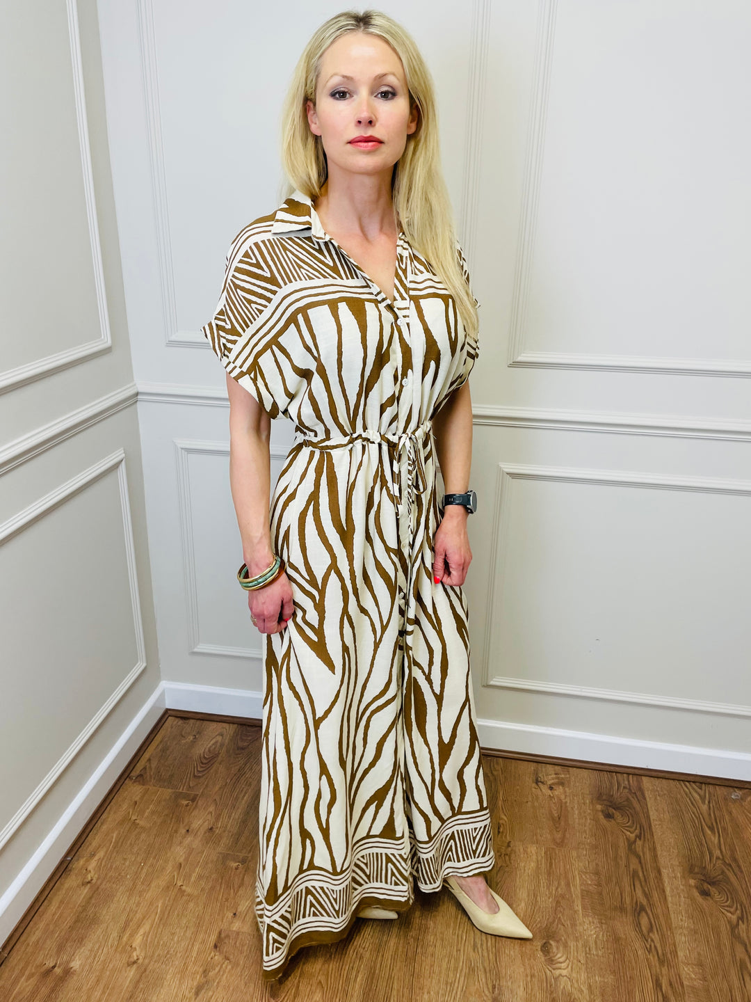 "GRACE" Stripe Print Tunic-Cream & Stone