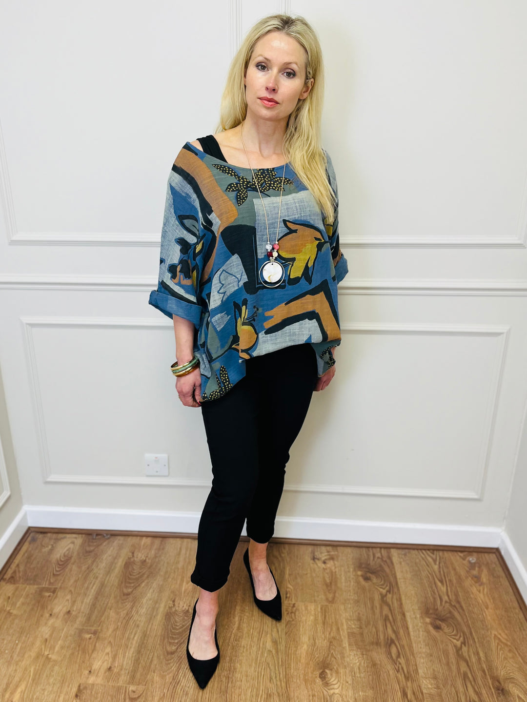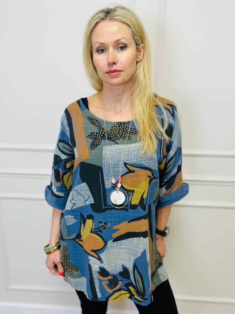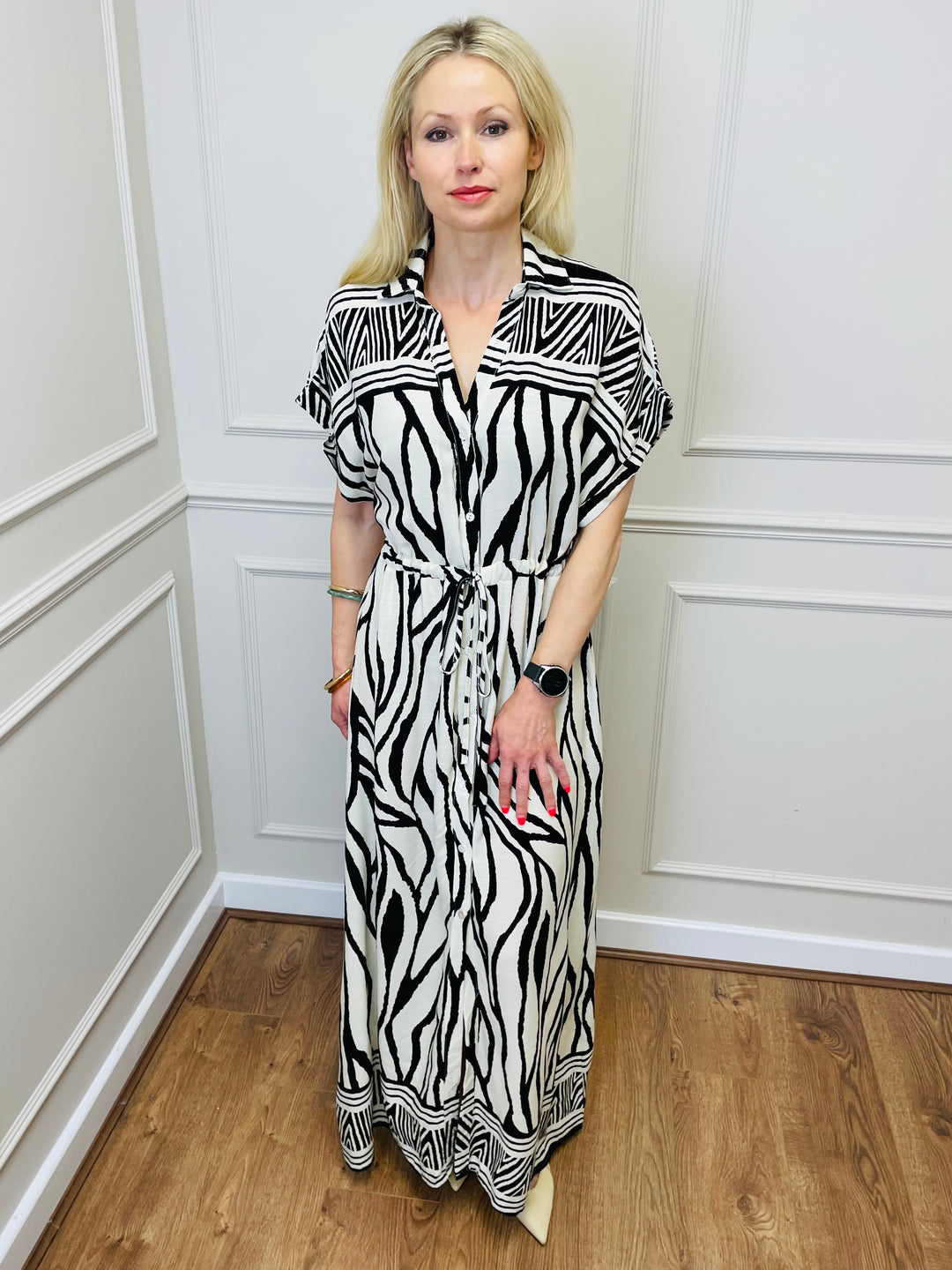 "GRACE" Stripe Print Tunic-Cream & Stone