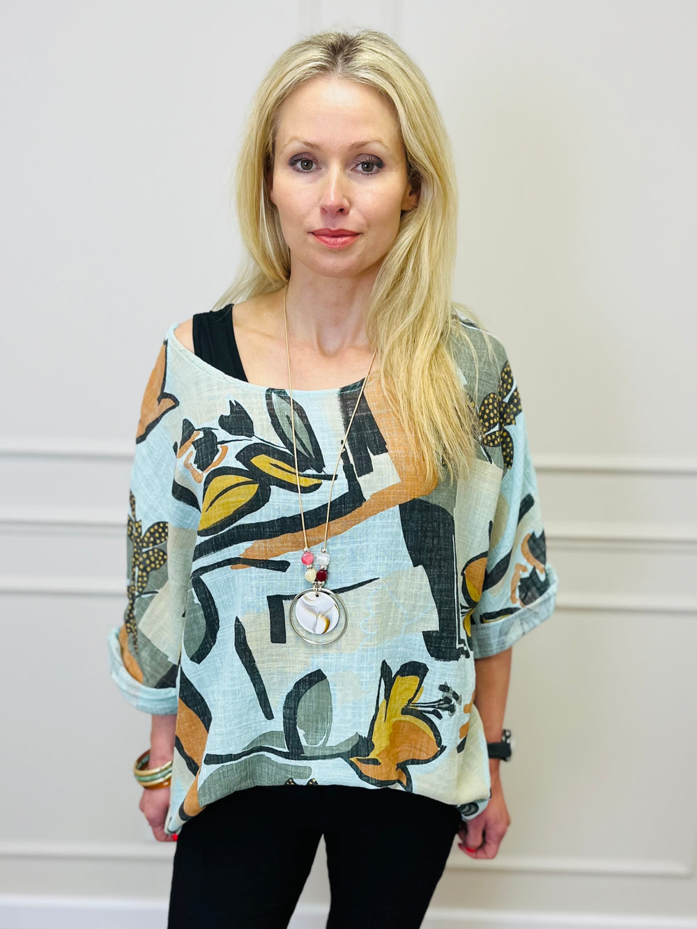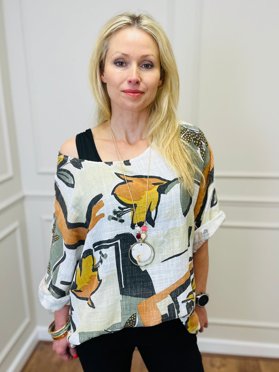 "GINA" Floral Print Fine Knit-Cream & Multicolour
