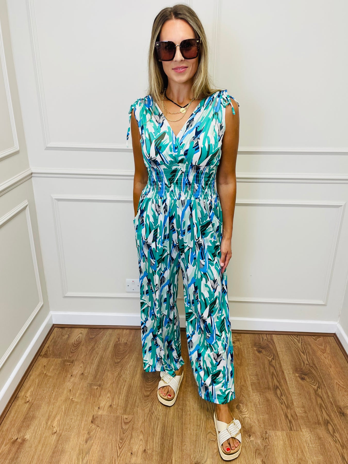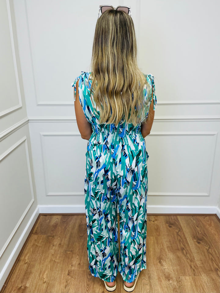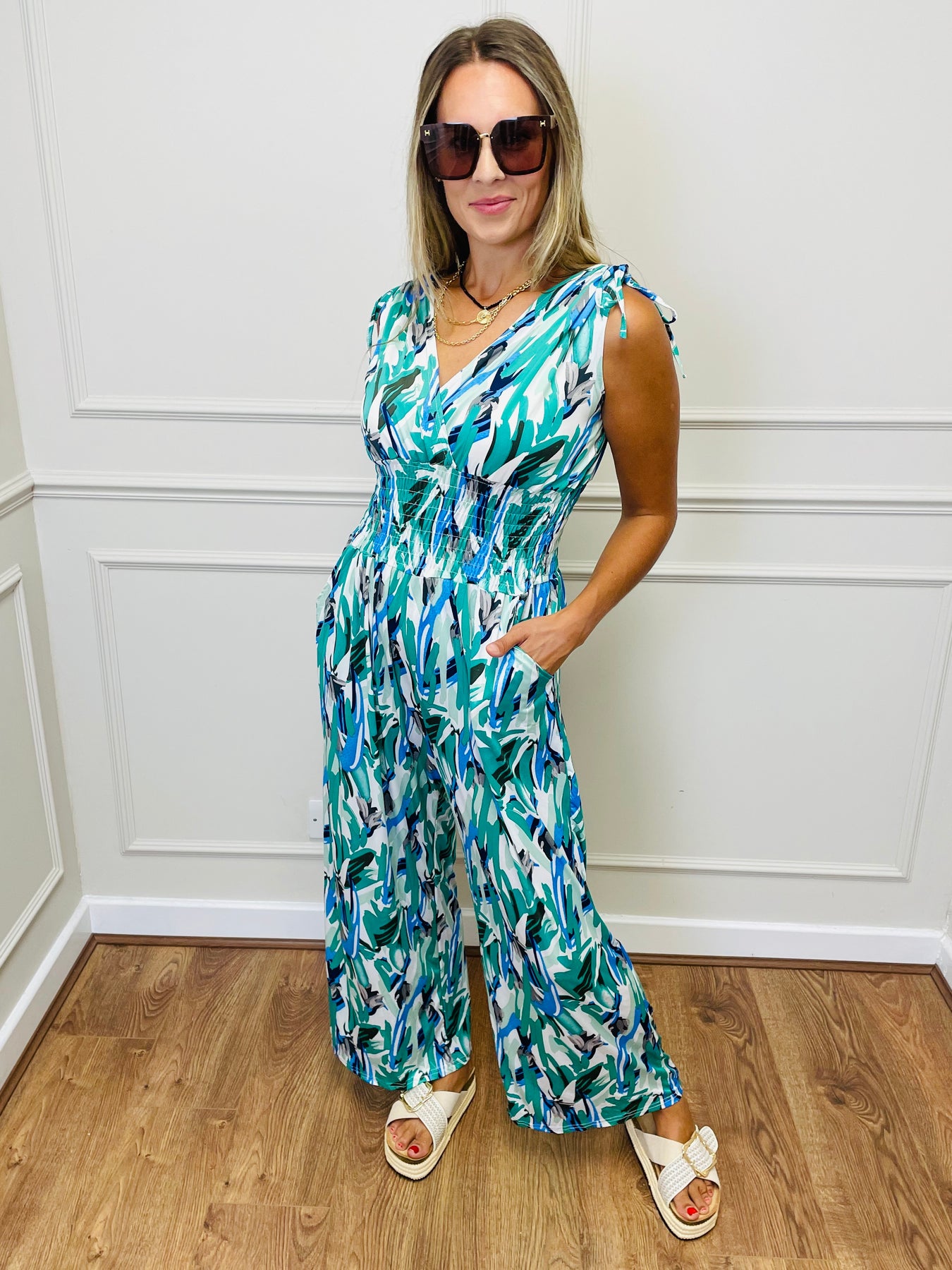 A jumpsuit is exactly what your wardrobe needs. Designed with a beautiful relaxed fit, this style features a feminine V-neckline, elasticated waistline and it falls to a wide leg trouser.