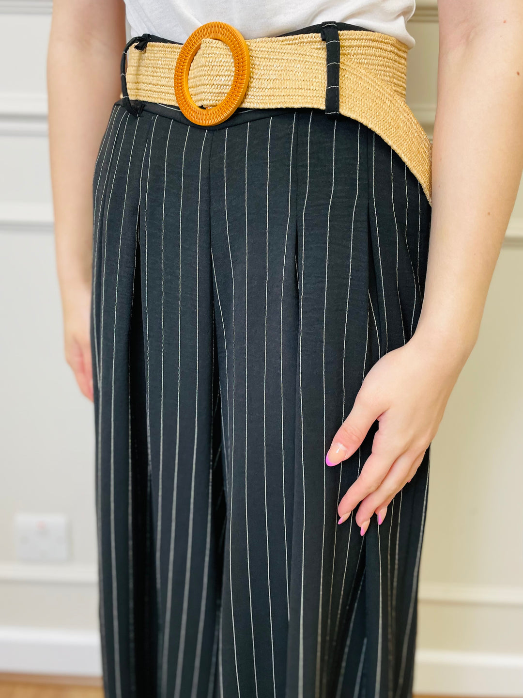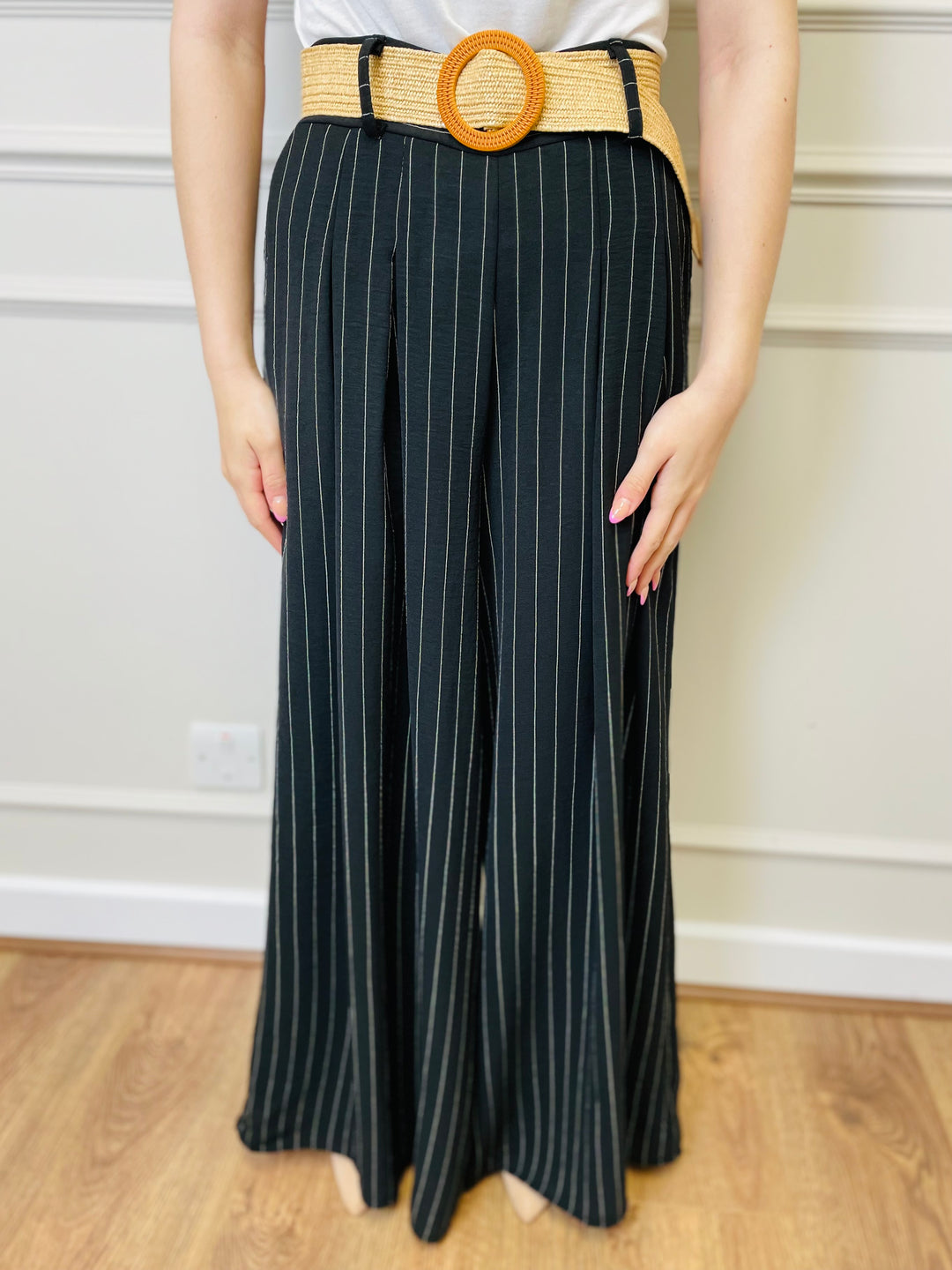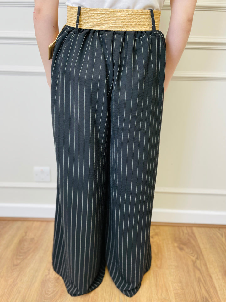Trousers so light and breezy, you'll actually want to wear them in warm weather! Wide leg, comfort waist band, pockets, the forever trendy stripe print and complimentary belt are just few of the reasons you will love the KAYLA trousers this season.