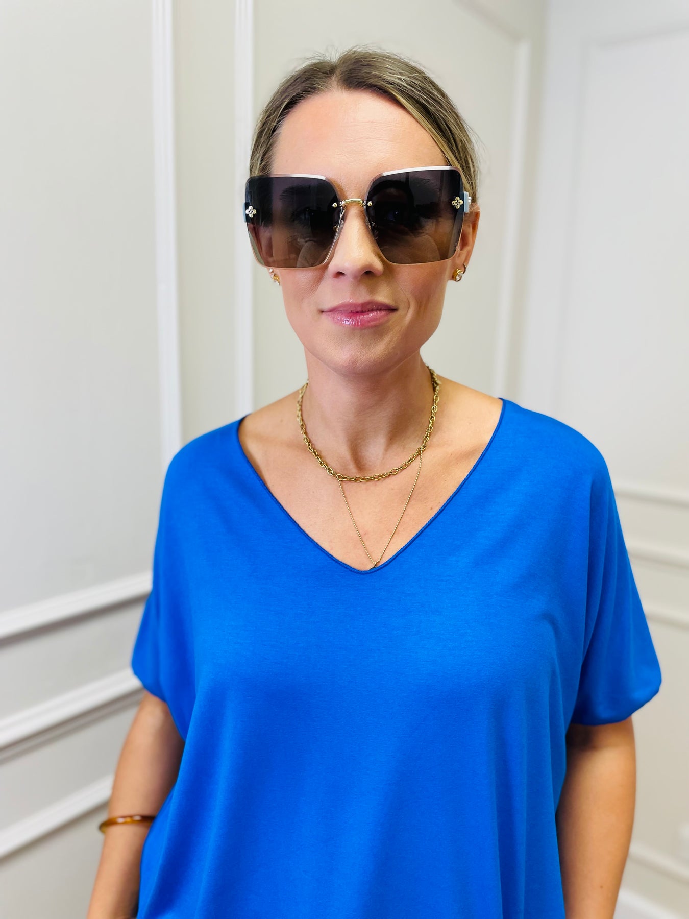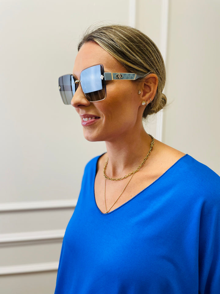 Pair your summer outfit with these sunglasses. Featuring black lenses, a side logo detail and square shape.